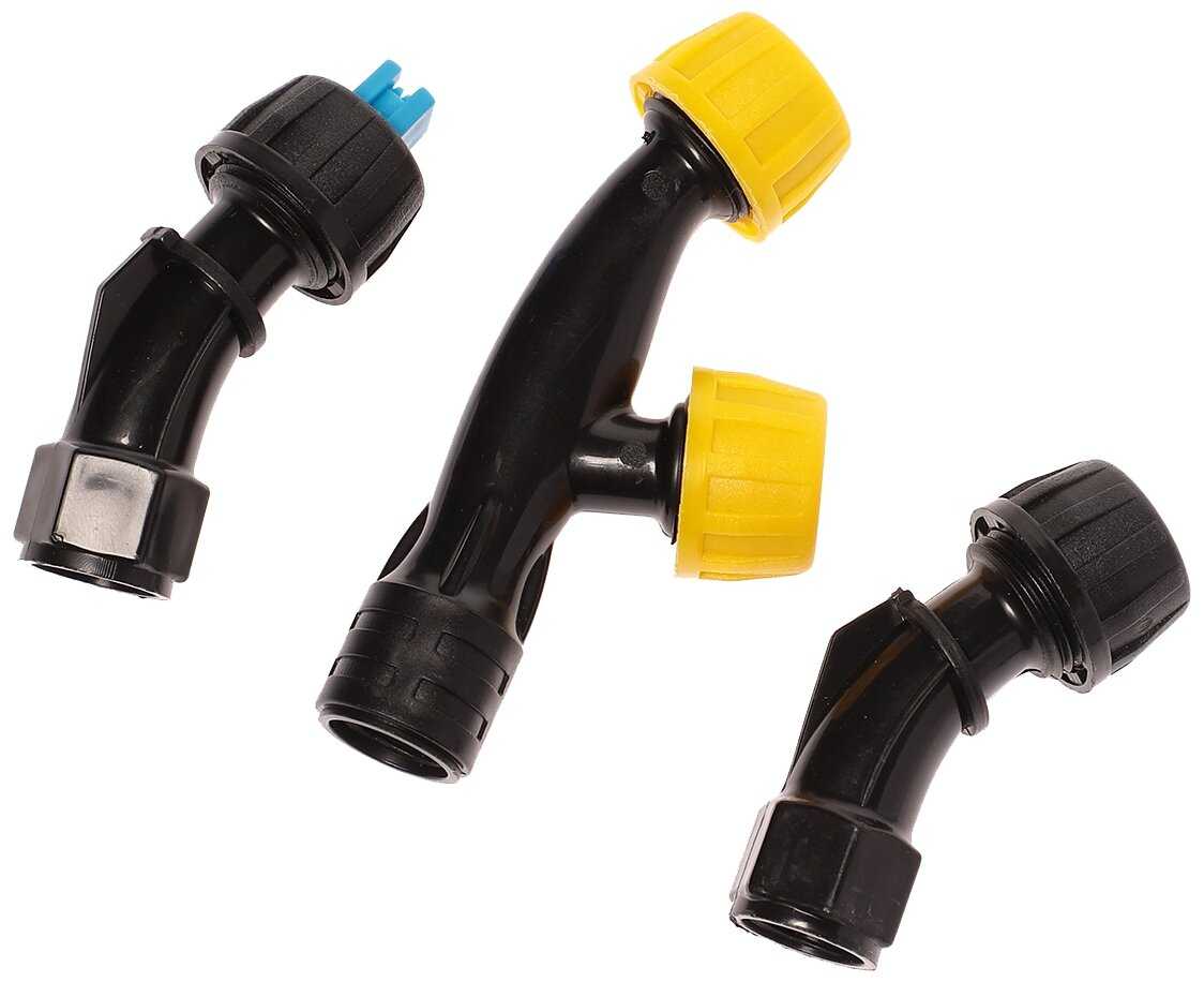 - Три сменные форсунки в комплекте позволяют регулировать тип распыления (струя, туман, конус) под разные культуры.