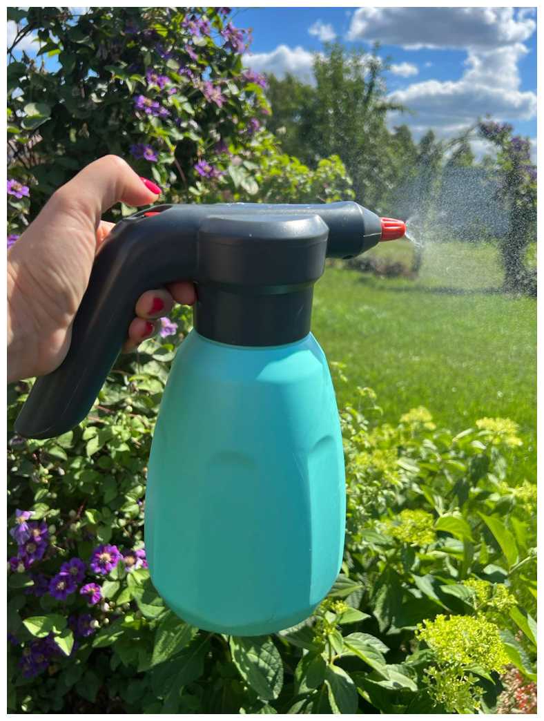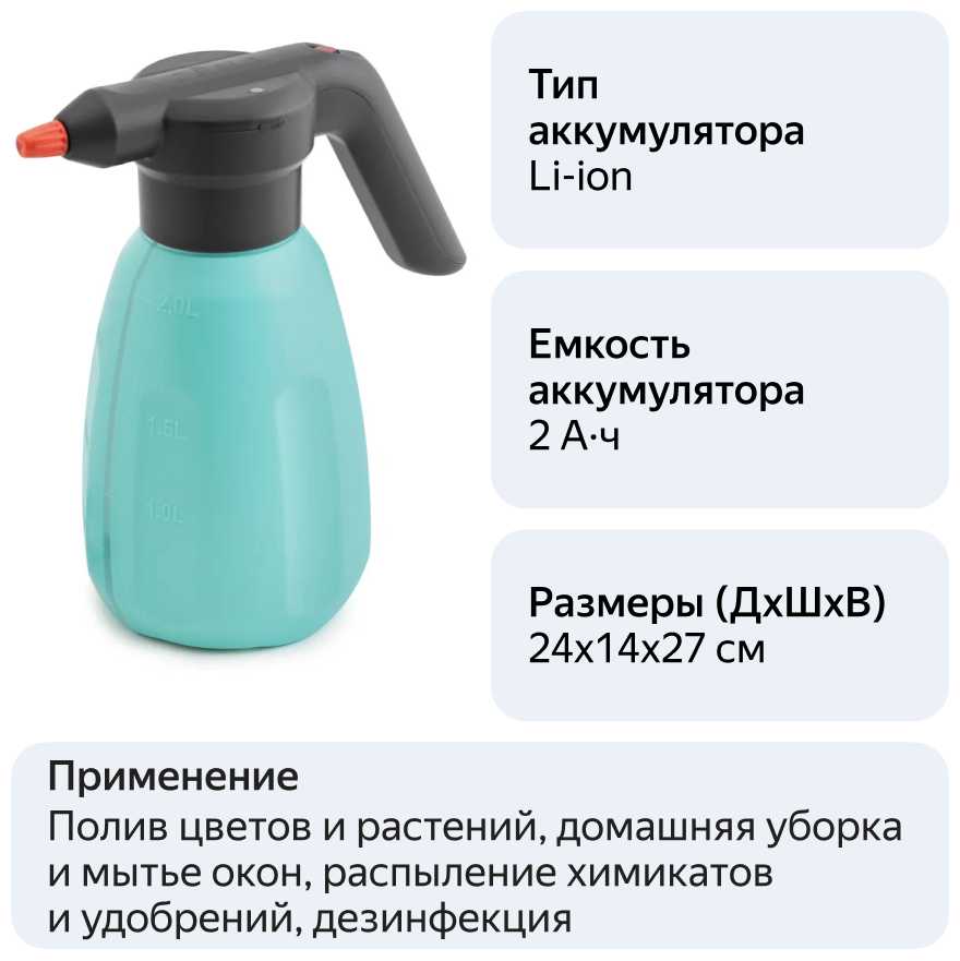 - Подходит для сада (обработка томатов, цветов), дома (увлажнение), авто (мойка фар) и ремонта (смачивание поверхностей).