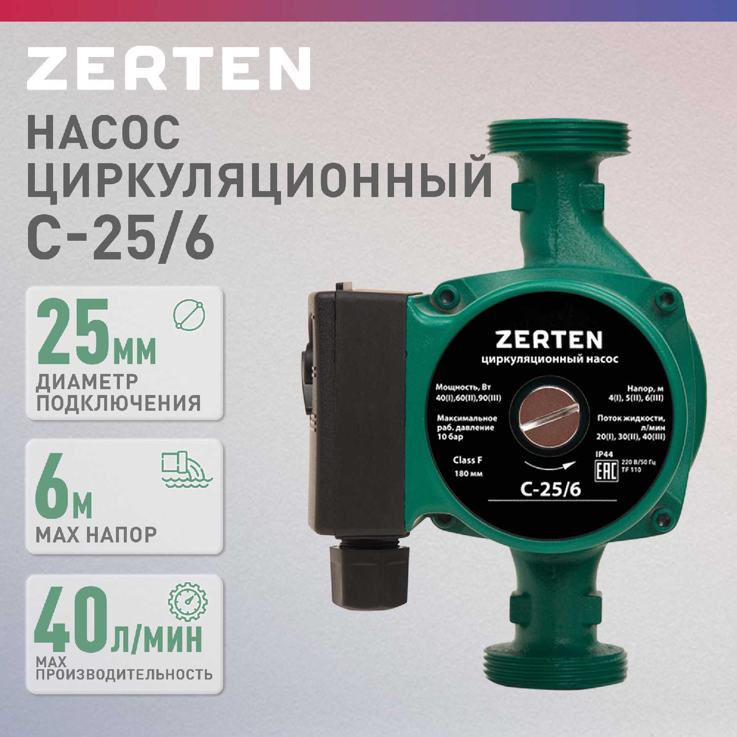 Отзывы о Насос циркуляционный Zerten C-25/4 72 Вт, напор 4 м, 40 л/мин