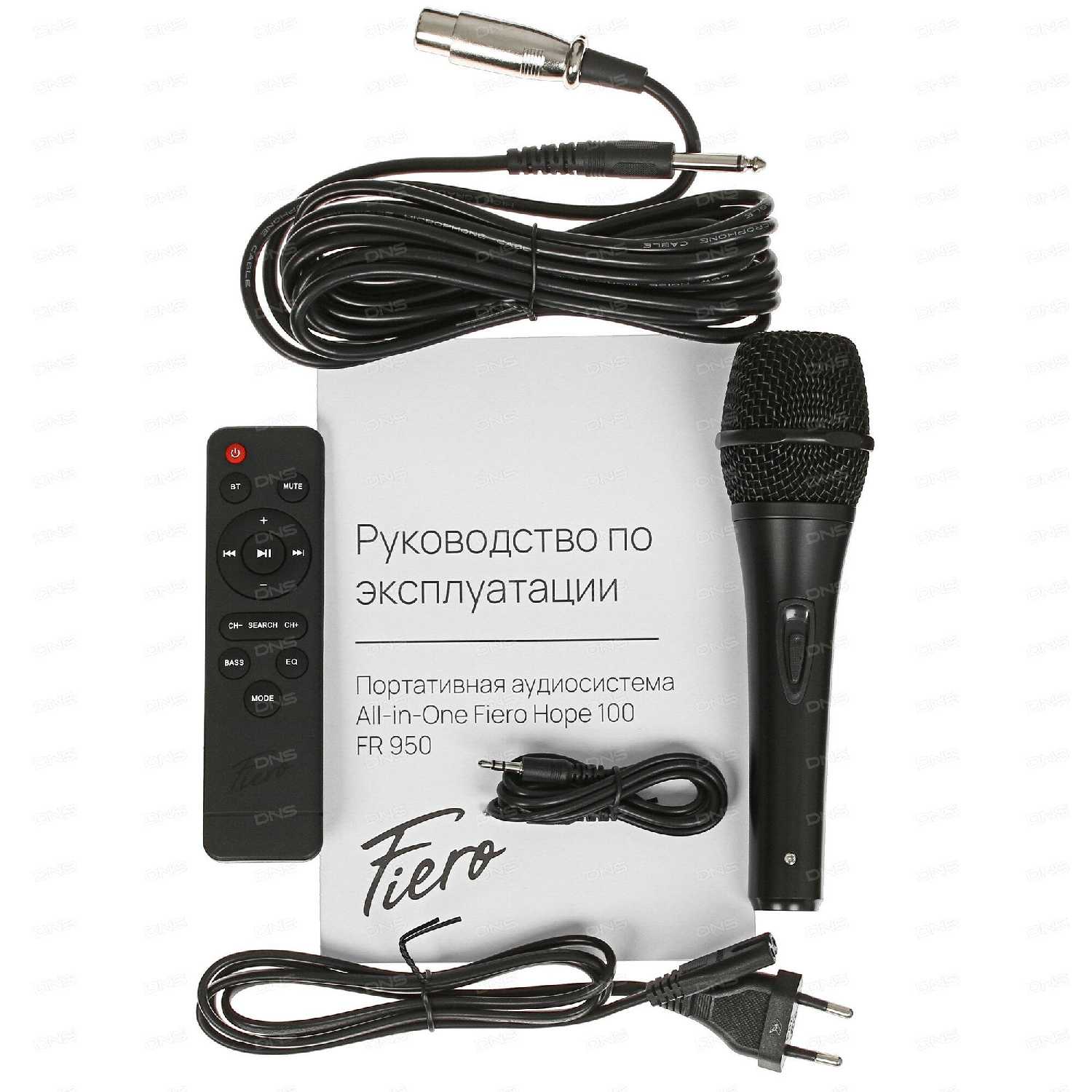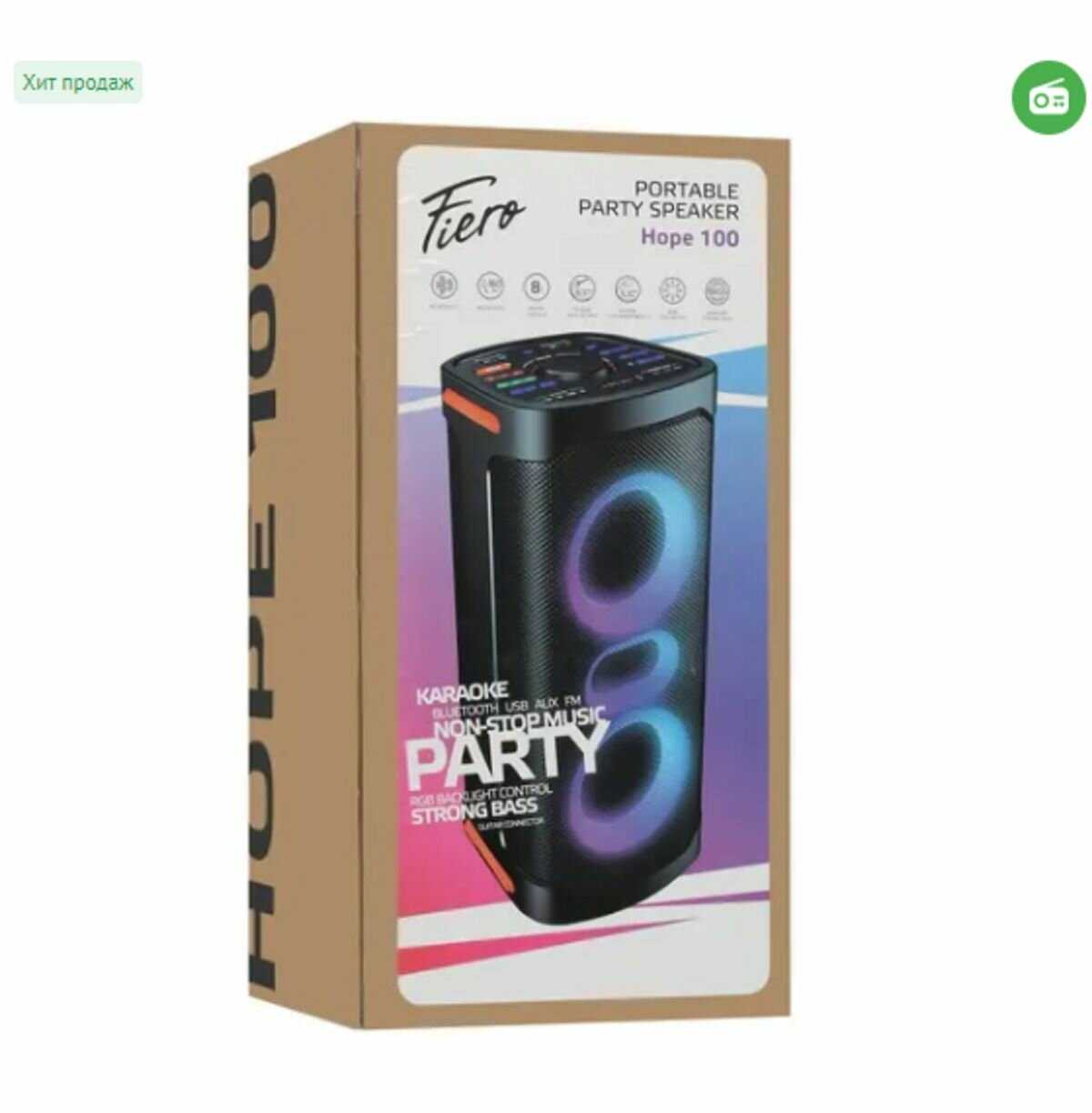 Колонка просоо огонь! Пришло все с пломбами! В комплекте зарядное, кабель аукс и пульт ду. Отдельно купил 2 микрофона беспроводных. Работают супер. Радио, флешка, все работает на ура! Светомузыка супер! Переживал, когда зпбрал, думал вае таки jbl partybox 110 брать сначала, но поверьте, вы не пожалеете если пииобретете именно fiero emotion 200. Это пушка-бомба! Всем советую!