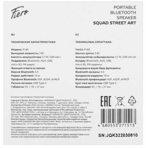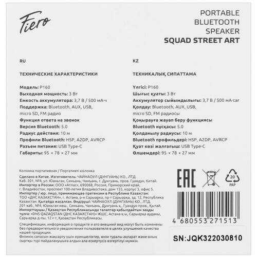 Отзывы о Портативная колонка Fiero Squad Street Art P160