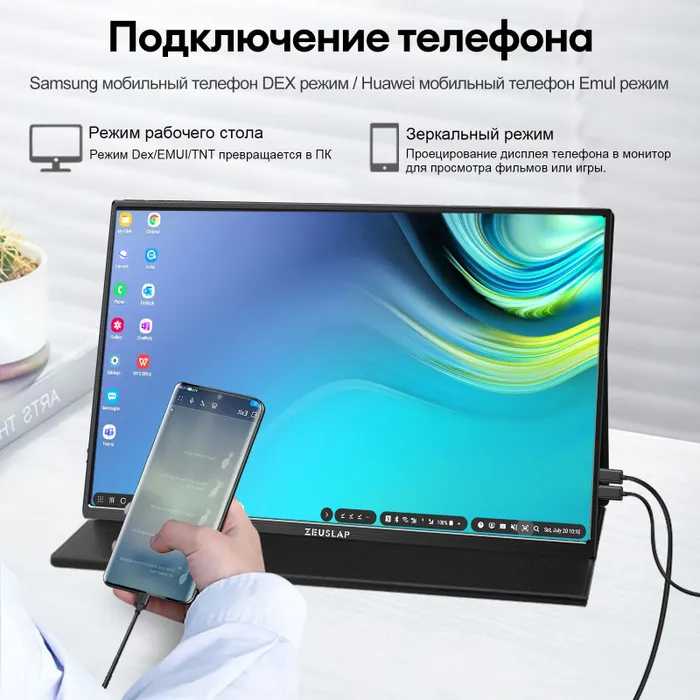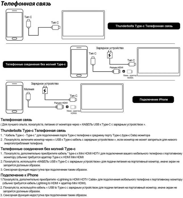 Для работы со смартфонами (например, Qualcomm Snapdragon 8 Gen 1/2 или Huawei Mate X3) используйте комплектный кабель Type-C, подключив его напрямую к порту монитора. Важно: при использовании USB-C 3.1 может потребоваться дополнительное питание через второй порт Type-C от блока питания для стабильной яркости. Некоторые пользователи отмечали проблемы с Samsung Galaxy S10e (сенсорное смещение) и Xiaomi 11T (отсутствие сигнала). -