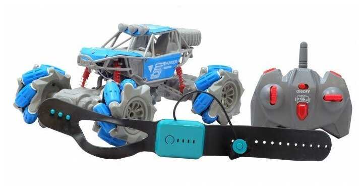 - + Очень интересно выполненная игрушка, ездит в разные стороны, в том числе "крабом". Есть фишка - управление с браслета. Перезарядаемый аккумулятор.