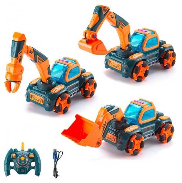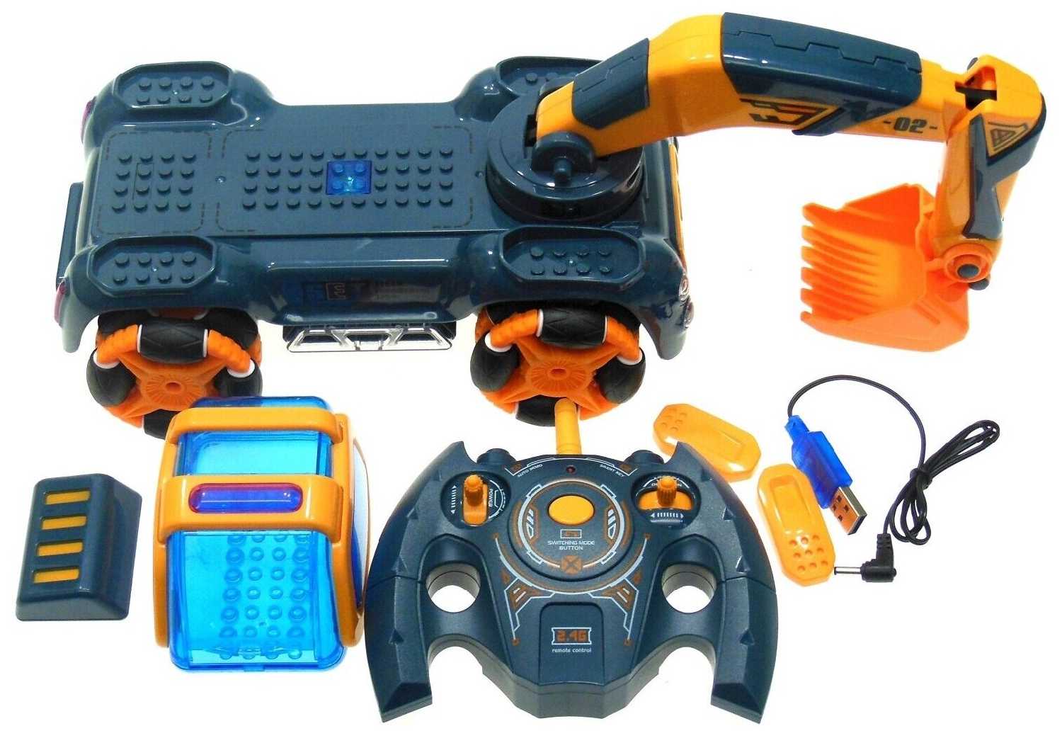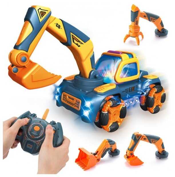 - + отлично ездит. есть несколько вариантов сборки: ковш, манипулятор, скребок. музыкальный. светится. ребенок в восторге, играть одно удовольствие