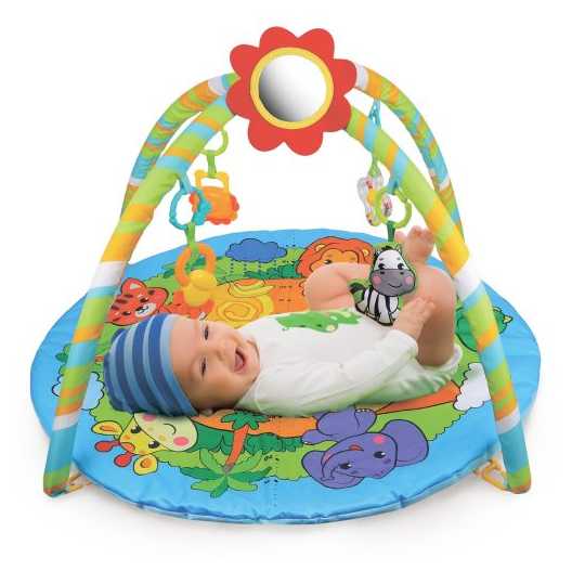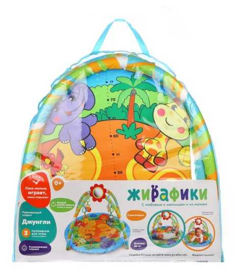 - + Простенько и со вкусом. Яркие краски, гибкие направляющие для игрушек. Также понравилось наличие ростомера на коврике. Очень прост в сборке и в разборке. Буквально десяток секунд.