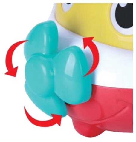Глазки и пропеллер крутятся, задний отсек открывается. Поет, разговаривает. Когда закидываете фигуру внутрь - голосом говорит, как она называется ("квадрат", "треугольник" и т.д.). Песенки внутри не избитые, сильно не бесят :)