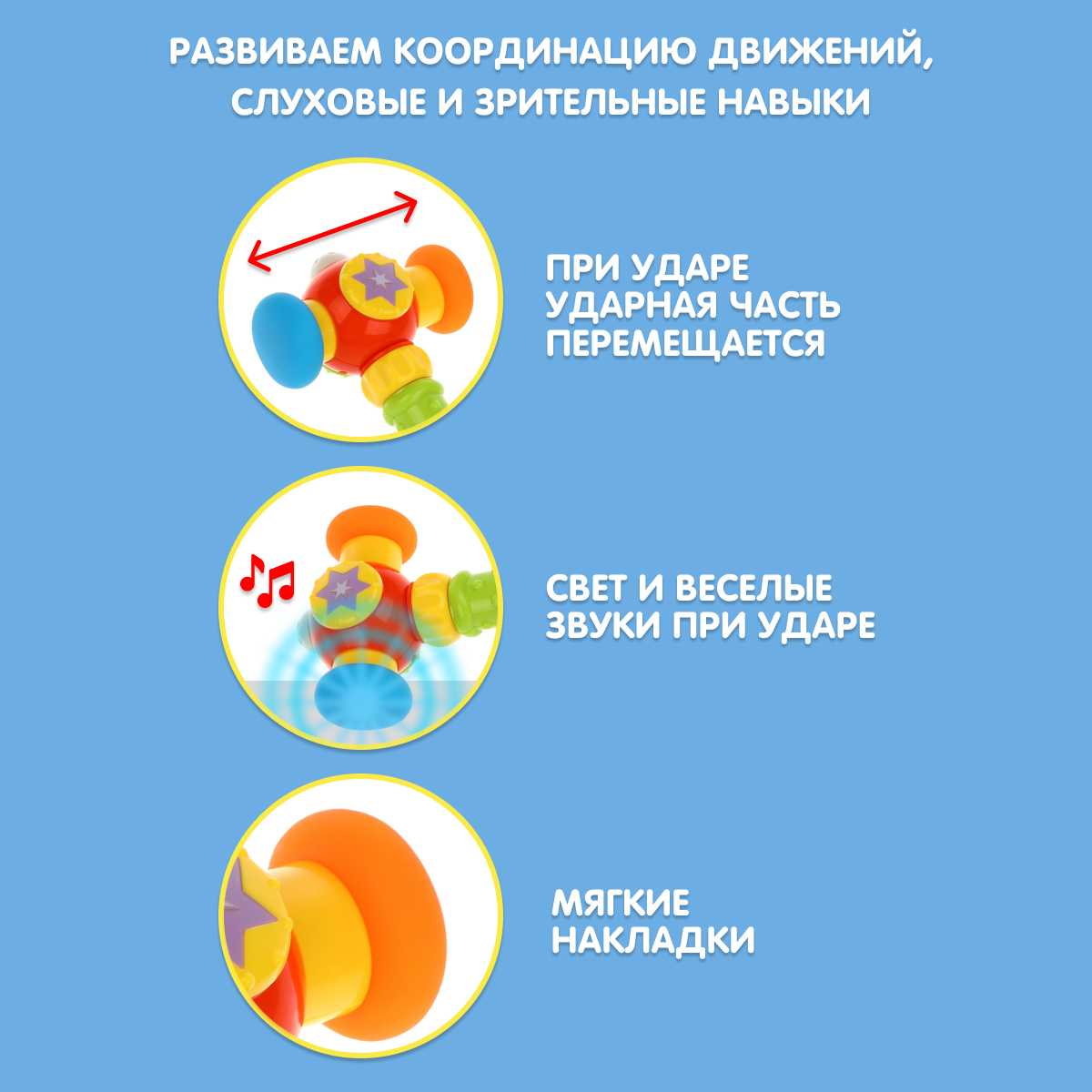 - + Качественные материалы, яркие цвета, ребенку нравится, мягкое основание молоточка