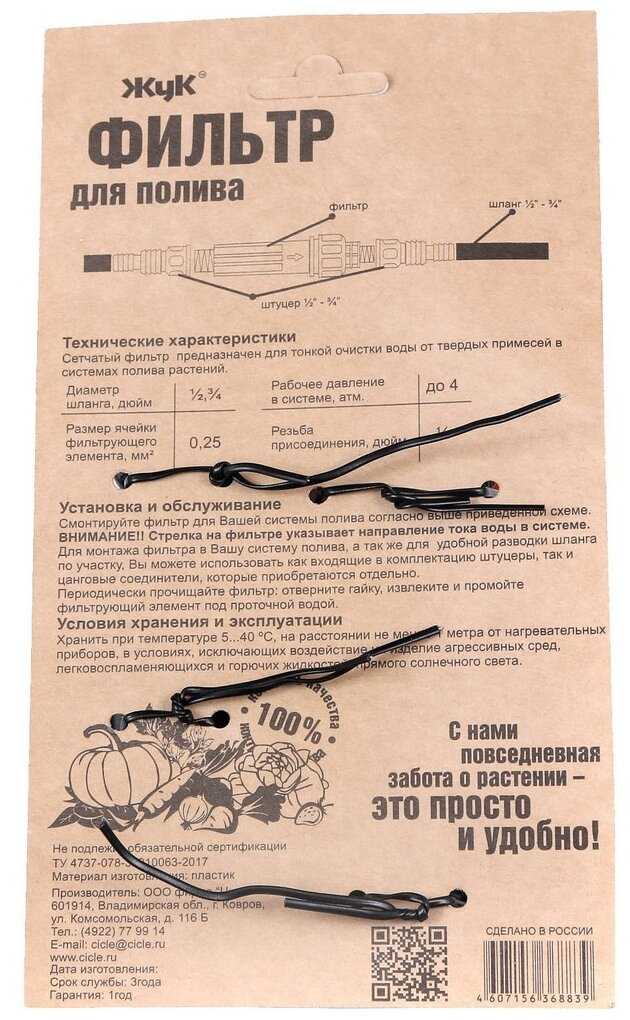 - + Фильтрует воду из бочки для капельного полива. Легко разбирается и чистится. Непрозрачный, водоросли не растут.