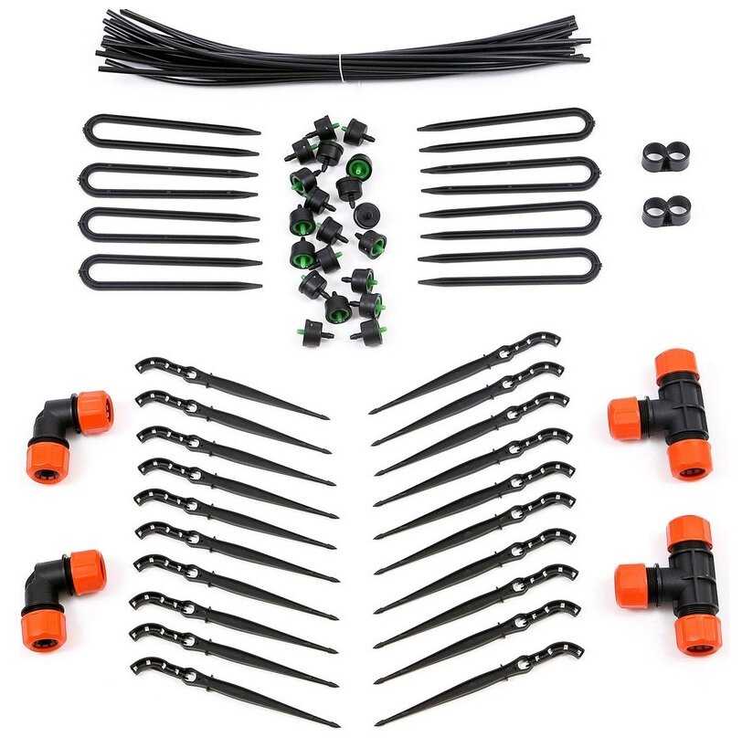 | Комплектация : | микротрубка - 20 шт, стрелка с зажимом - 20 шт, компенсированная капельница 4л/ч - 20 шт, цанговый тройник 1/2" - 1 шт, цанговый уголок - 1 шт, зажим для магистрального шланга - 2 шт, прижим к почве - 8 шт |