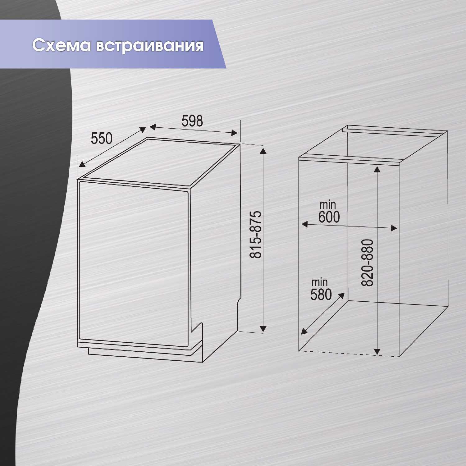 | Дополнительная информация : | Габариты для встраивания (ШхГхВ), мм: 605х560х880 |