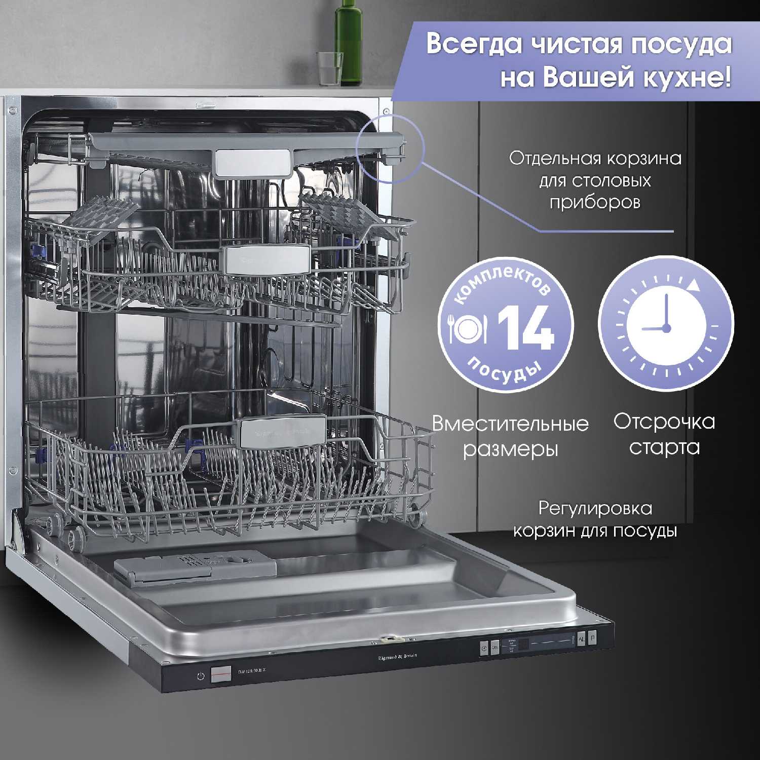 - Вместимость: 14 комплектов