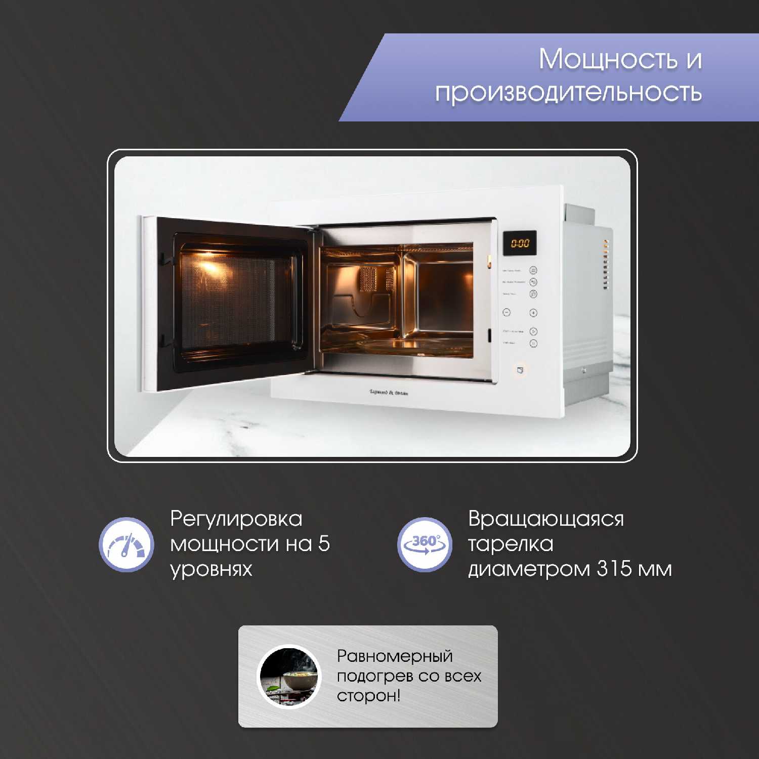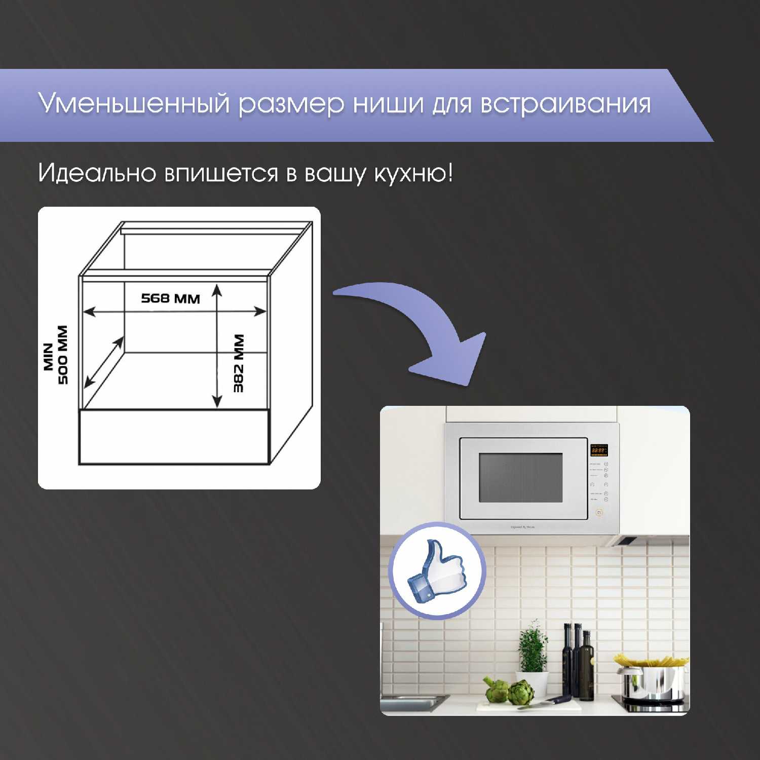 Эта микроволновка идеально подойдет для пользователей, которые ценят не только высокую производительность и скорость разогрева, но и современный дизайн. Она станет отличным выбором для тех, кто готовит несложные блюда и разогревает еду, а также для семей, где важна легкость ухода за техникой. Модель отвечает запросам тех, кто ищет функциональный и стильный прибор для встраивания. -