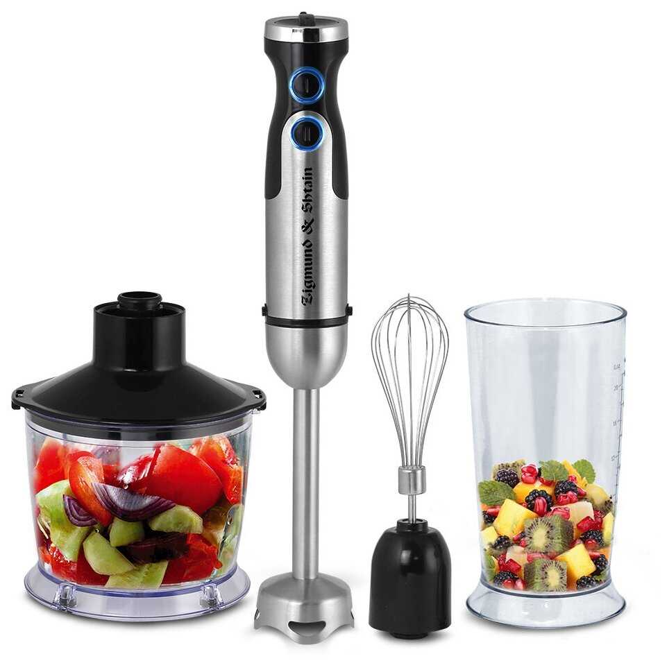 Подарила данный погружной блендер маме на день рождения. Очень долго выбирала между различными вариантами, остановилась именно на Zigmund & Shtain, тк это единственный блендер, выполненный из нержавеющей стали с мощностью 1500 вт и шестью скоростными режимами! Кроме того в комплекте идут чаша на 800 мл, стакан на 600 мл! Корпус имеет прорезиненное покрытие, при использовании даже мокрые руки не скользят. Работает практически бесшумно. При заказе прочитала отзывы, что блендер тяжелый, да, по сравнению с пластиковыми его вес ощущается в руке, но это никак не мешает, работать им одно удовольствие! Мама довольна!