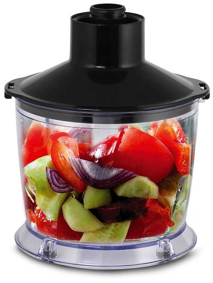 - Чаша 800 мл с рифленым дном предотвращает проскальзывание ножа при измельчении.