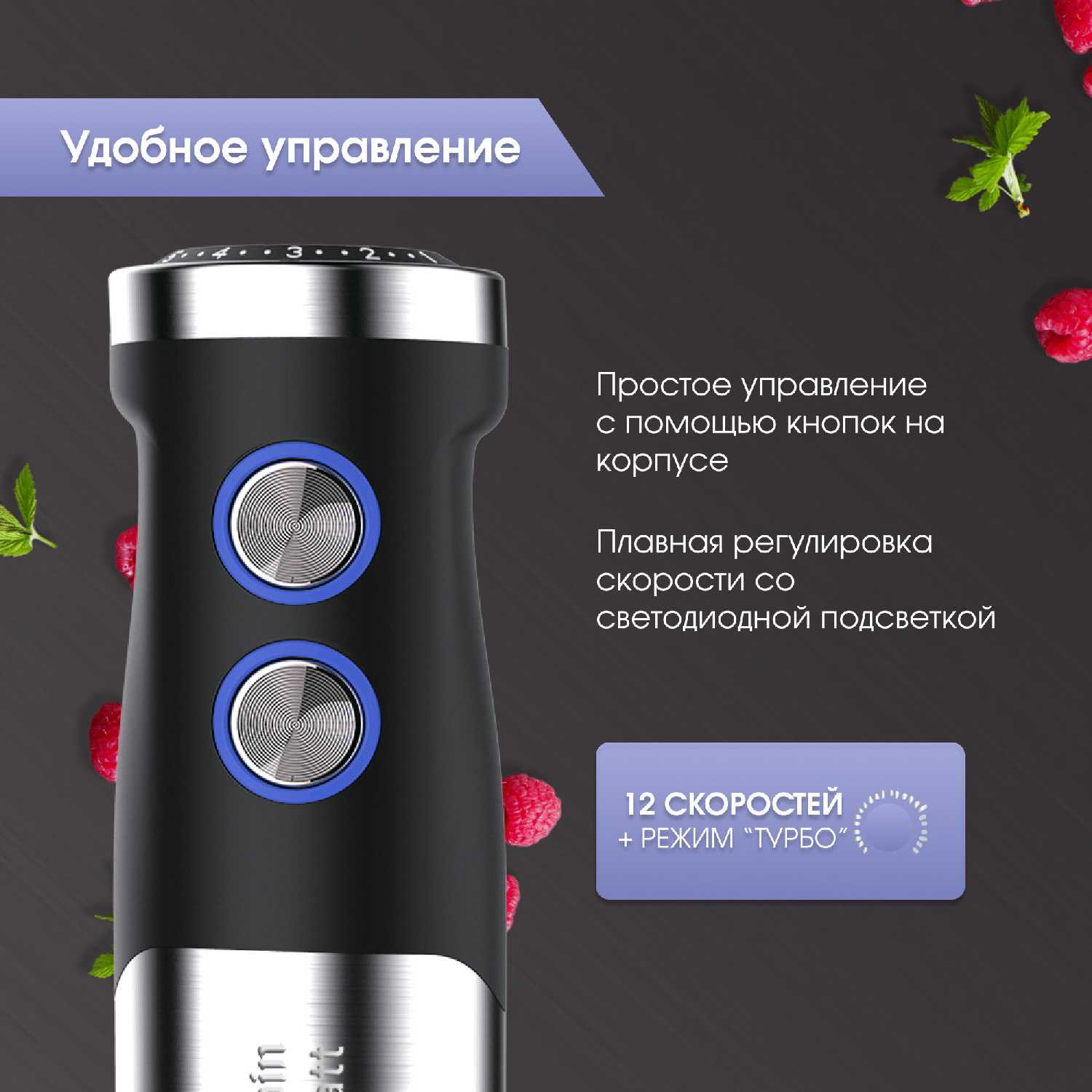 Измельчитель работает отлично,, венчик тоже достаточно быстро взбивает.
