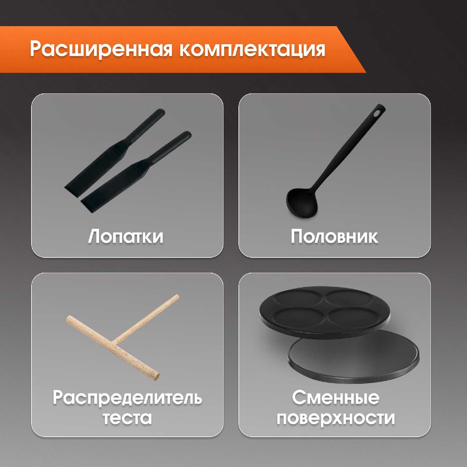 - + Простая легкая в обращении Можно печь блины даже при отсутствии минимальных навыков Все что необходимо есть в комплекте