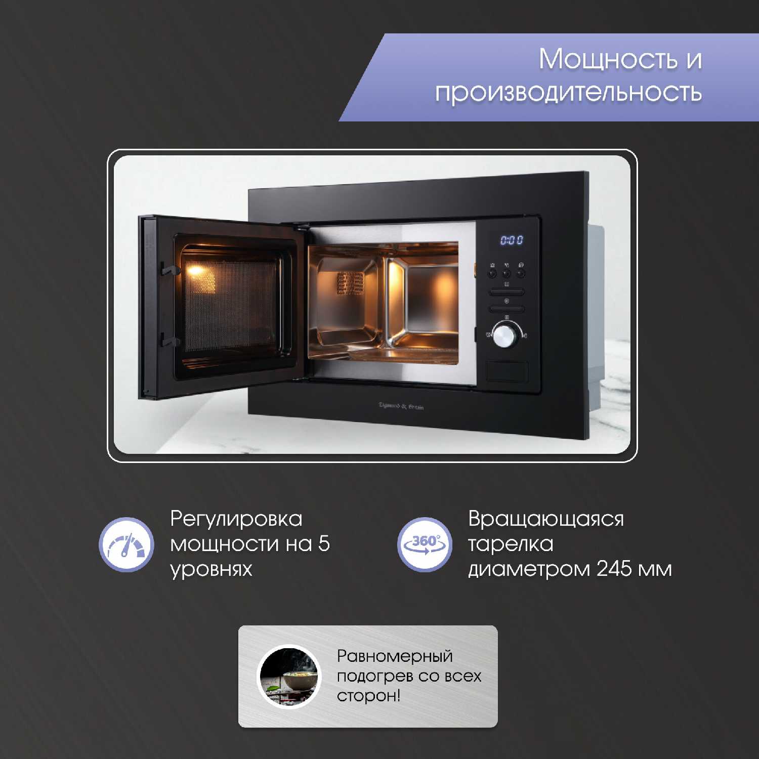 - Уникальное распределение микроволн обеспечивает интенсивный прогрев еды при минимальном нагреве тарелок, что подтверждают пользователи после длительной эксплуатации.