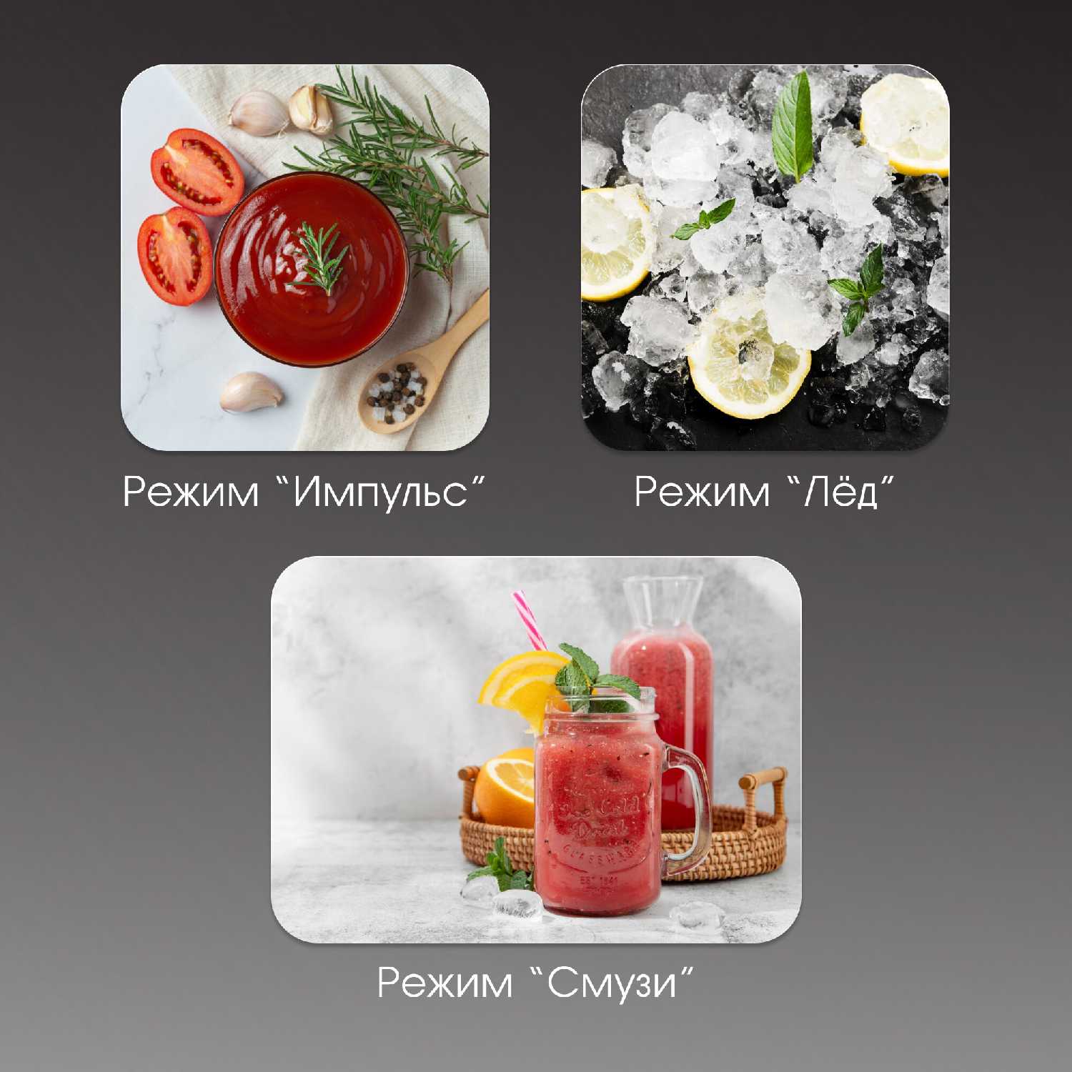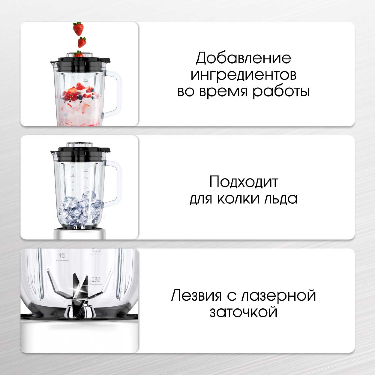 | Дополнительная информация : | Режимы: импульсный, смузи, колка льда. Защита от перегрузки и перегрева. 6 острых лезвий с лазерной заточкой. Чаша из стелка ECO+ |