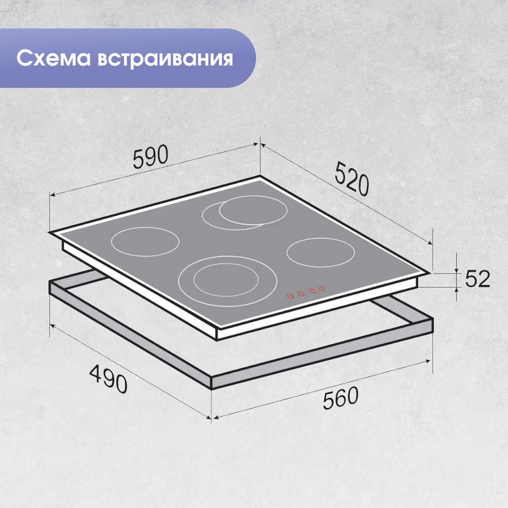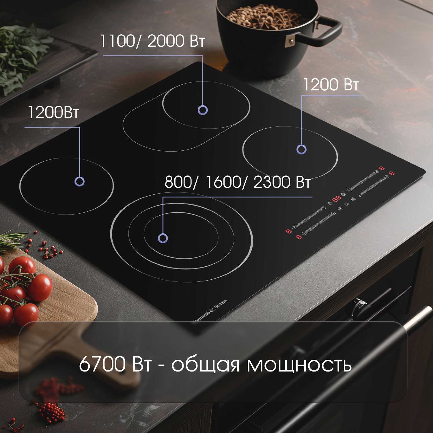 Безопасность : | защитное отключение конфорок, индикатор остаточного тепла, кнопка блокировки панели |