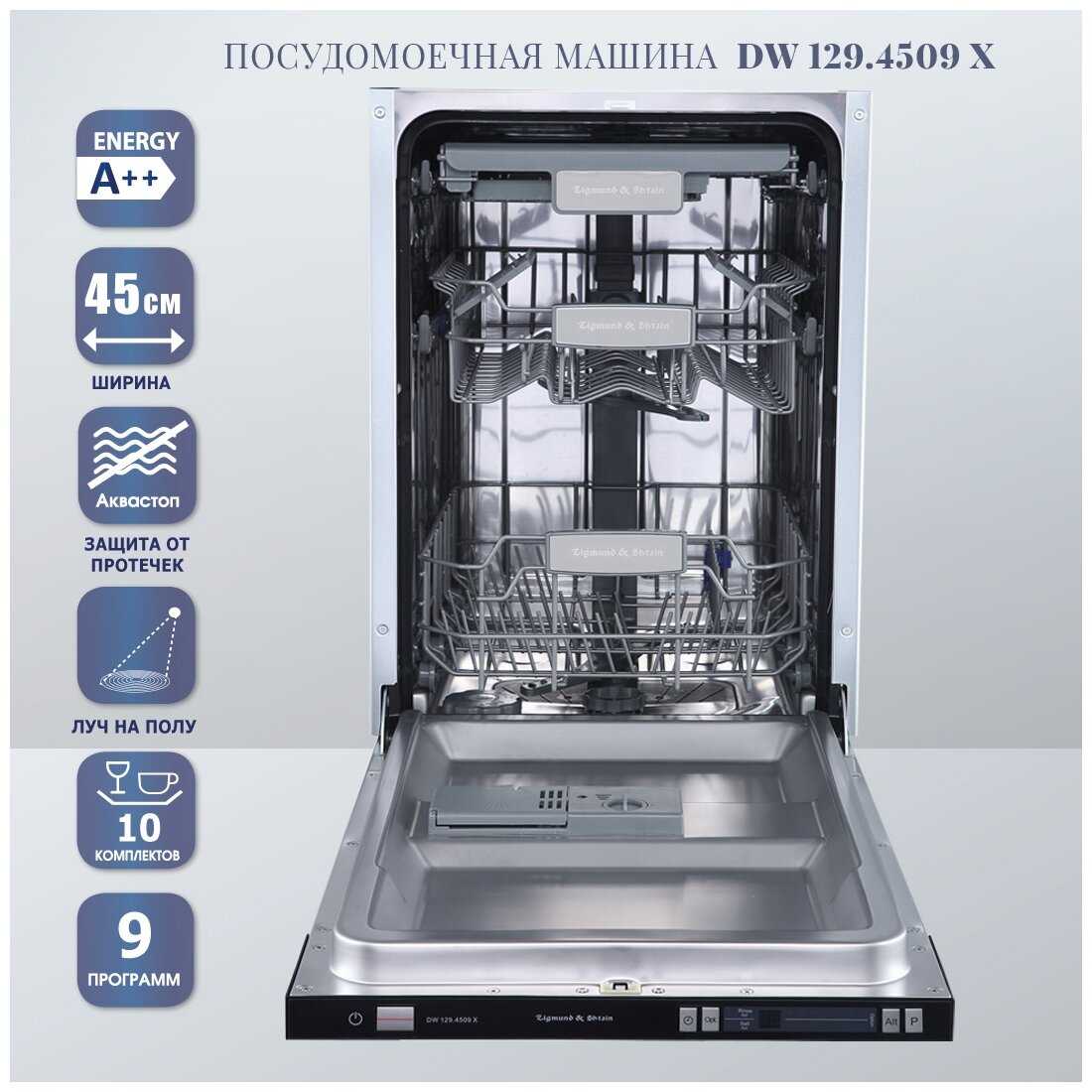 Встраиваемая посудомоечная машина ZIGMUND & SHTAIN DW 129.4509 X, узкая, полновстраиваемая, загрузка 10 комплектов