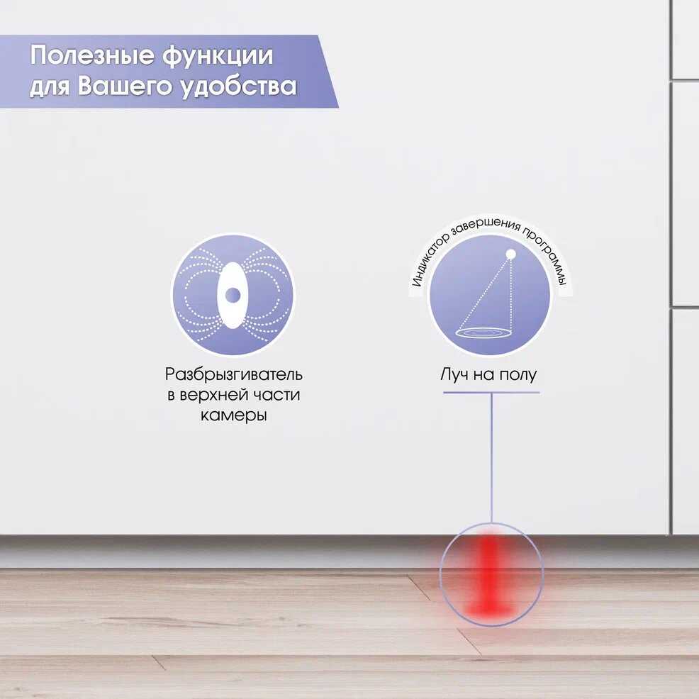 Особенности : | автоматическая установка жесткости воды, внутренняя поверхность из нержавеющей стали, дисплей, использование средств 3 в 1, подсветка камеры, проточный водонагреватель, регулируемая по высоте корзина для посуды, таймер отсрочки |