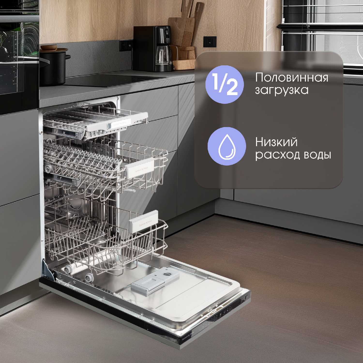 Особенности : | внутренняя поверхность из нержавеющей стали, использование средств 3 в 1, регулируемая по высоте корзина для посуды, таймер отсрочки |