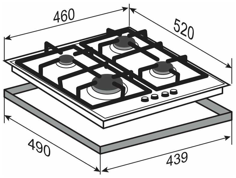 Это действительно единственная поверхность с 4 конфорка и.Размер 46 см.