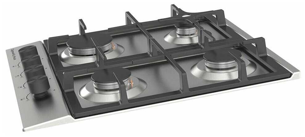 - + Единственный достойный вариант на 4 конфорки для маленькой кухни.Готовить можно одновременно на всех ,кастрюля на 6л+ 3л и чайник помещаются легко.Чугунные решётки,раздельные.Конфорки легко снимаются.Переключатели металлические и во время приготовления пищи не нагреваются.Во время подключения не возникло никаких проблем.Электроподжиг мы не подключали,нам не нужен.Газконтроль срабатывает отлично.При этой функции переключатель нужно обязательно подержать при зажигание,10 сек.Так у всех газовых плит и панелей задумано.