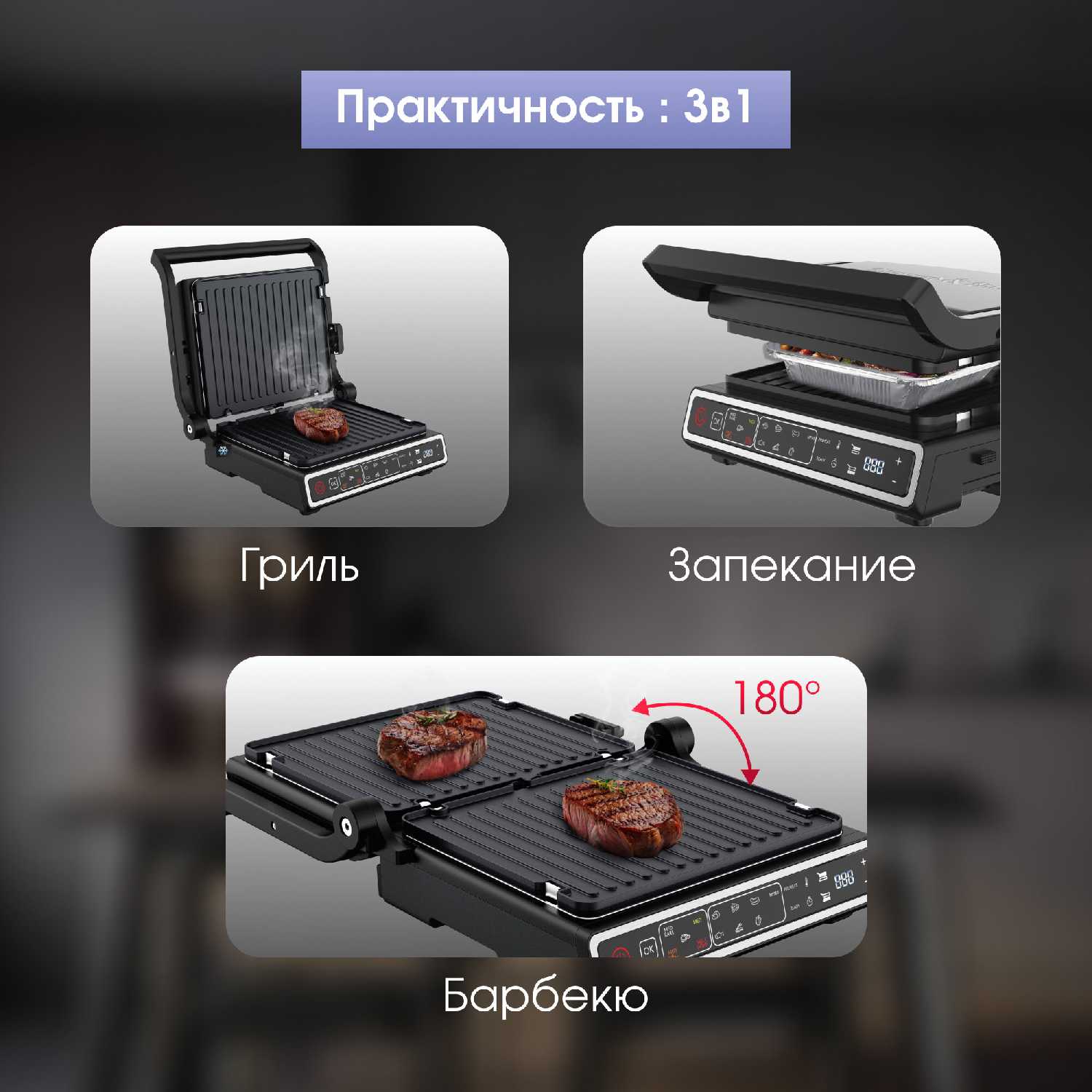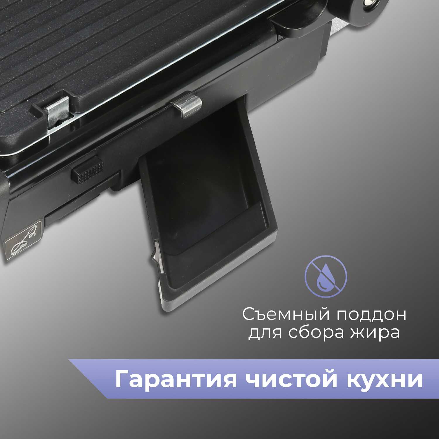 | Особенности : | антипригарное покрытие, контактный гриль, поддон для сбора жира, съемные пластины |