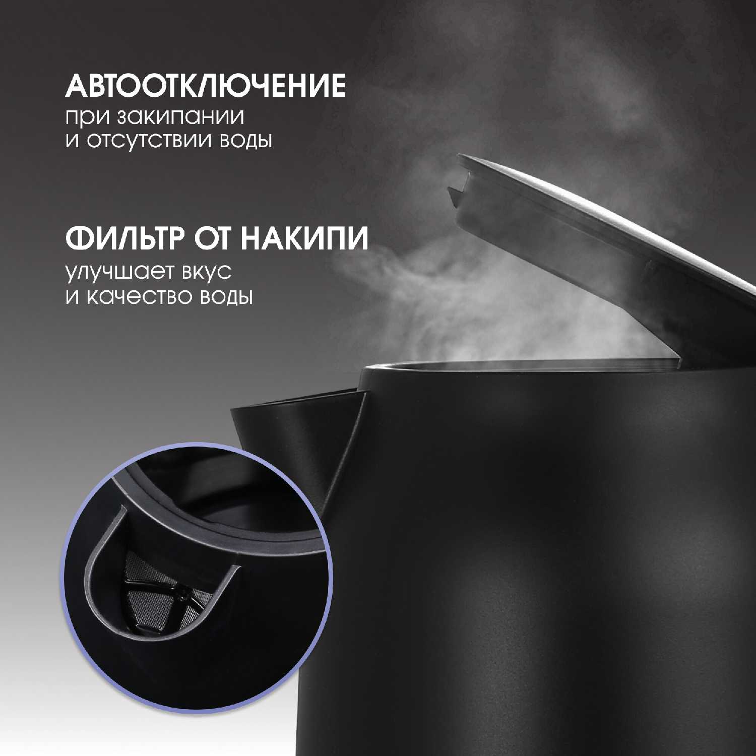 Прекрасный чайник за вменяемые деньги. Черный матовый корпус добавляет элегантность прибору. Очень удобная крышка -широкая. Достаточно тихий. Достаточно мощный! Очень довольна!