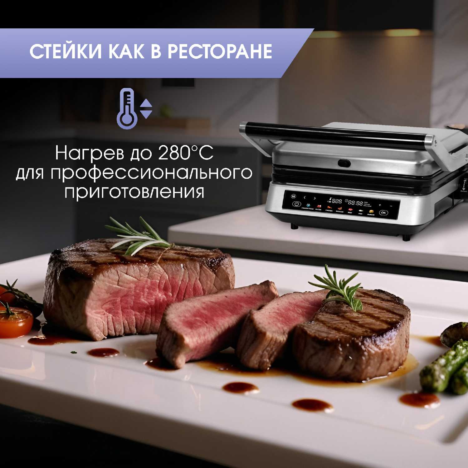 сегодня попробовали 1 раз, на ней пожарили тунец, все отлично разогревается, быстро готовит, хорошо будем пробовать и готовить дальше. следующая по плану стейки, что самое классное все любят разные прожарки. отлично, что инструкция на русском языке ВС все доступно, понятно, написано, никаких проблем не возникло.