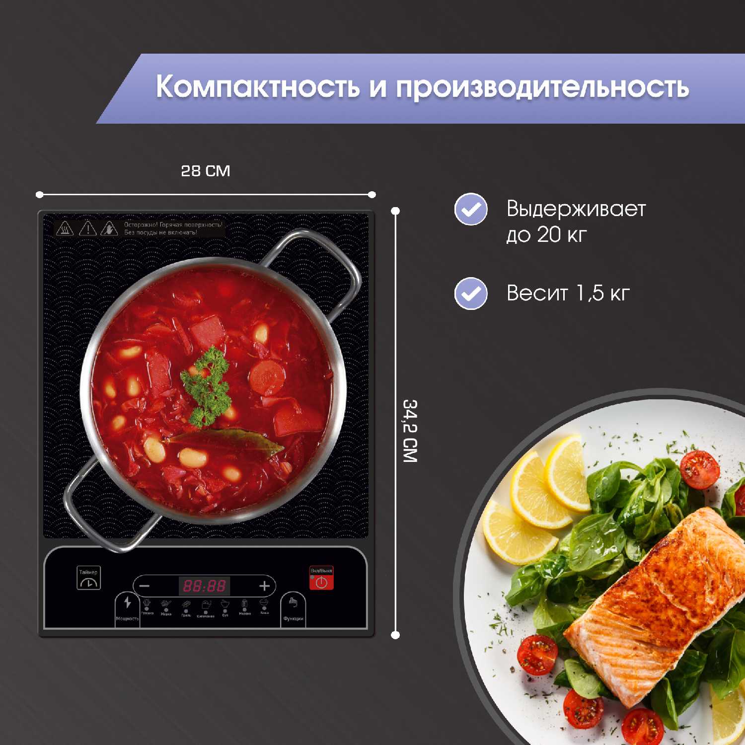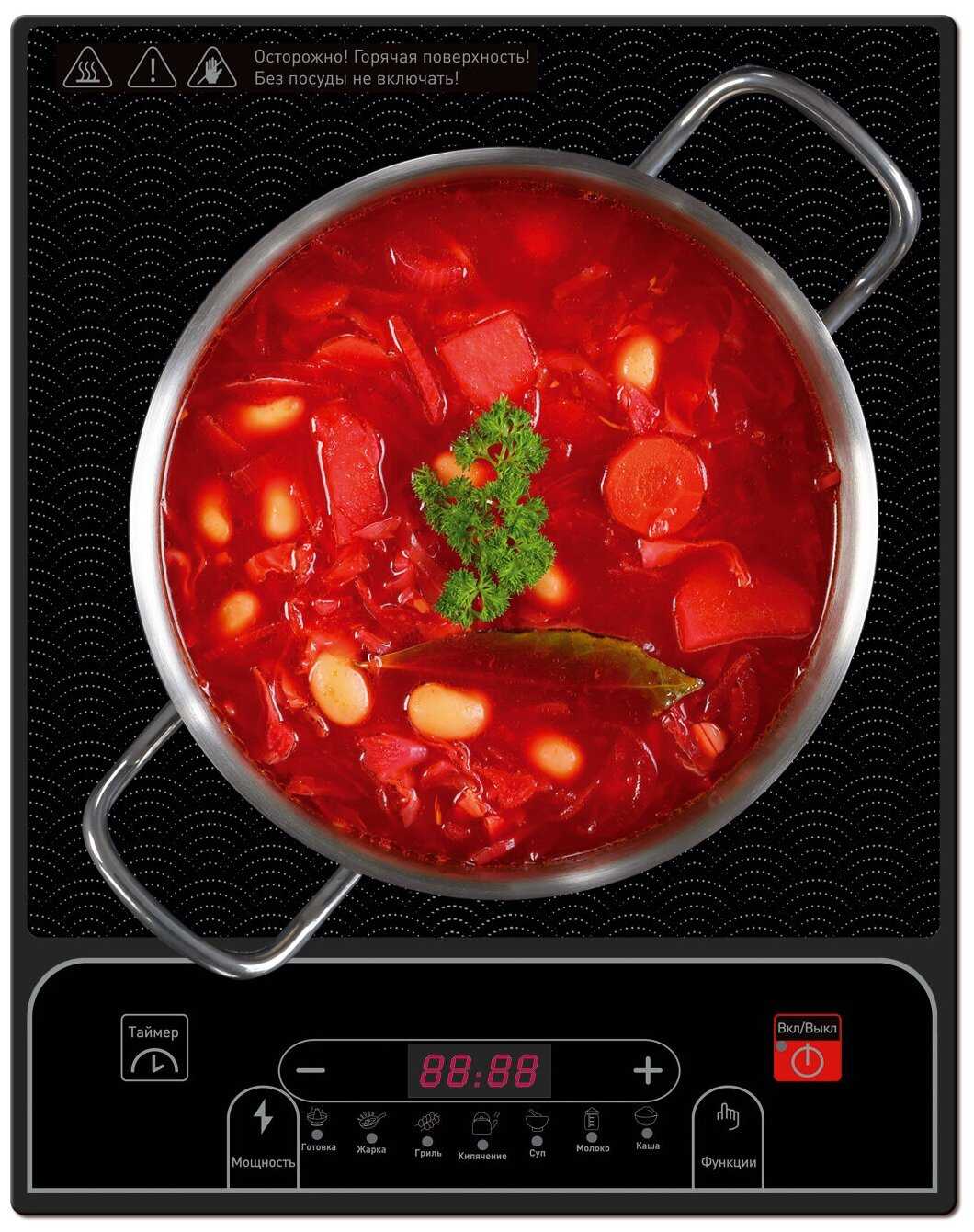 - Вода в 3-литровой кастрюле закипает за 1-2 минуты благодаря мощности 2000 Вт и инфракрасной технологии.
