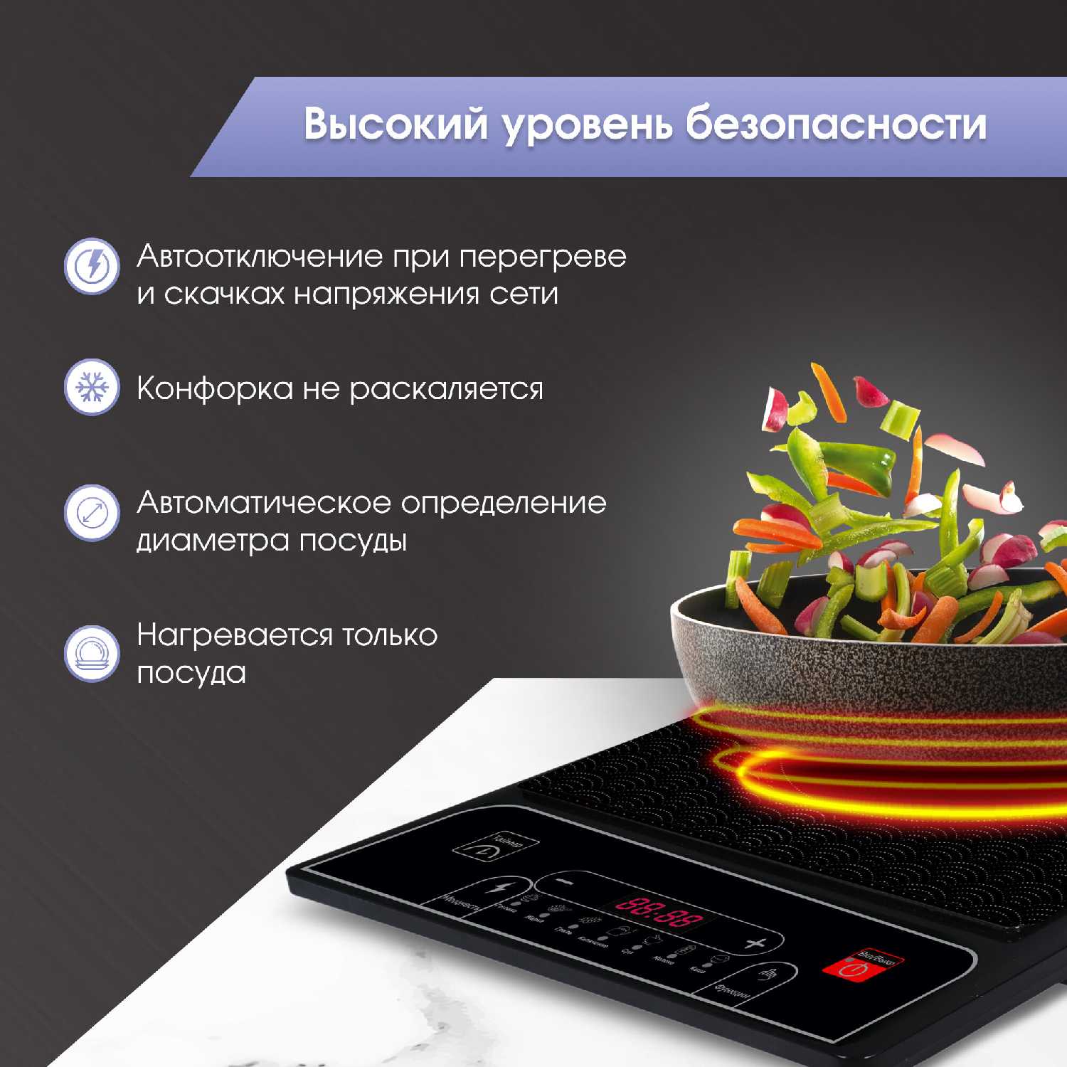 - - Надо выбирать подходящий размер дна посуды, слишком маленькие не подходят, панель вокруг может сильно раскалиться.
