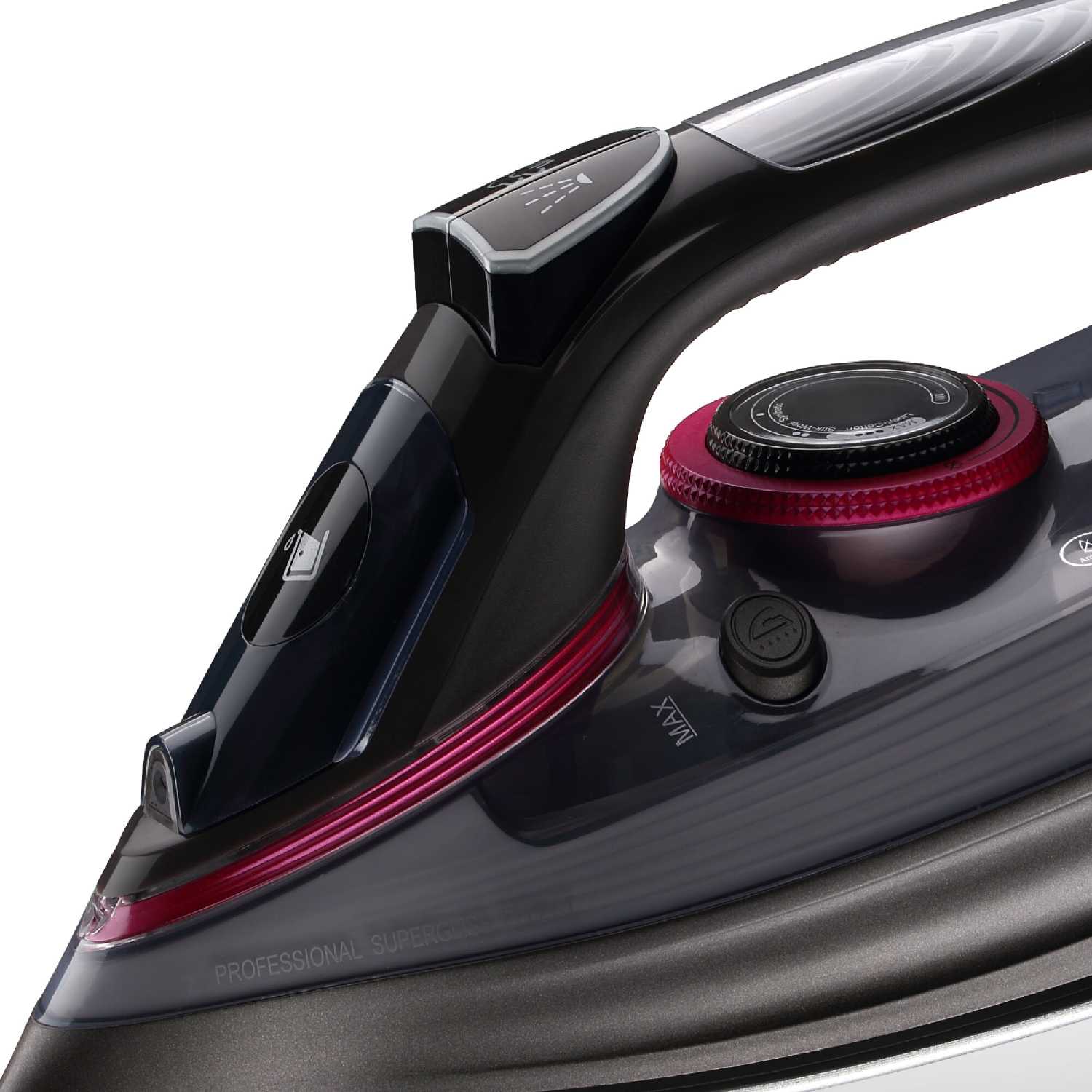 - Лежит удобно в руке, кнопка пара расположена снизу рукоятки, что снижает усталость при длительной глажке.