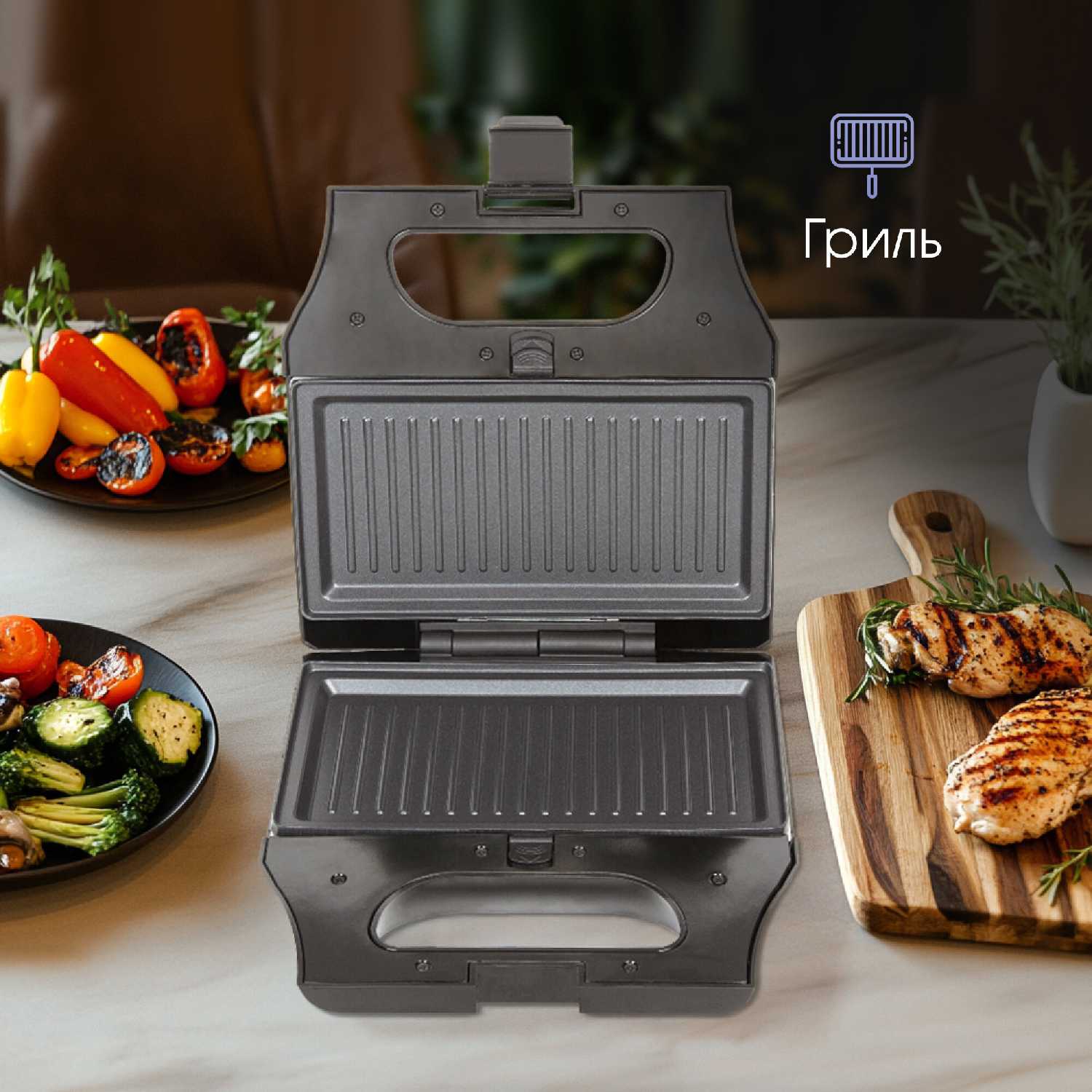 | Особенности : | антипригарное покрытие, возможность смены панелей, защита от перегрева, индикатор работы |