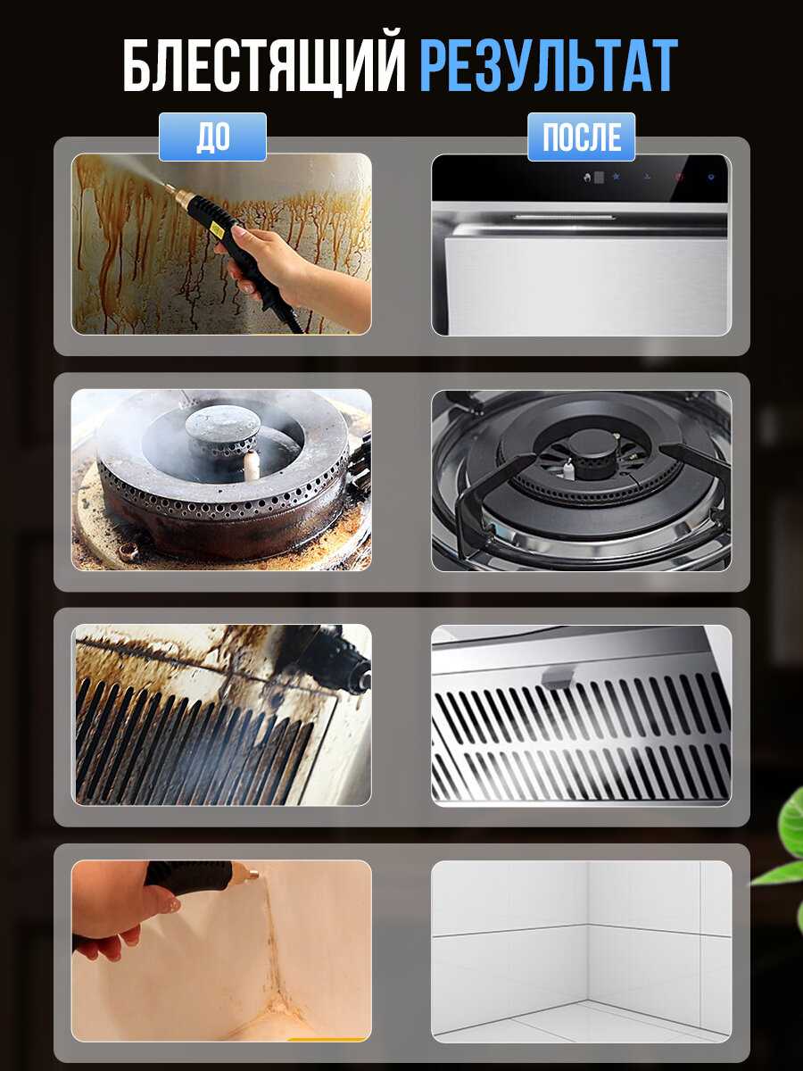 Аппарат работает. Напор нормальный. Холодильник, духовку, газовую плиту хватит почистить. Если что то мосштабное чистить, то устанете.