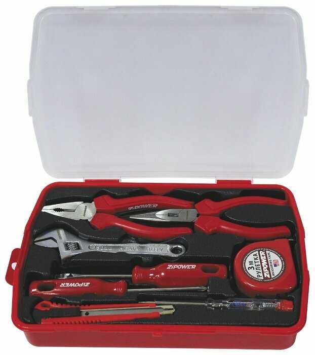 Дополнительная информация : | плоскогубцы комбинированные 160 мм, плоскогубцы удлиненные прямые 160 мм, разводной гаечный ключ 150 мм, отвертка крестовая PH1, отвертка шлицевая SL5, тестер электрика 140 мм 100–250 В, канцелярский нож со сменными лезвиями 130 мм, рулетка 3 м |