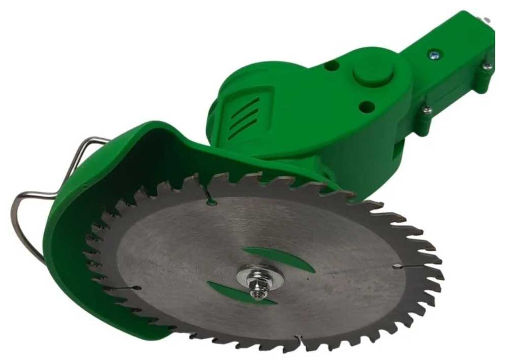 Мотор мощностью 200 Вт демонстрирует неожиданную эффективность с металлическим ножом: он уверенно срезает осот, лопухи, молодую поросль малины и ветки толщиной до 1-2 см. Но при работе с высокой (выше 30 см) или влажной травой возникает намотка на вал, требующая периодической очистки. Диаметр скашивания всего 20 см ограничивает площадь обработки — для больших участков требуется газонокосилка. Система защиты двигателя корректно срабатывает при ударе о препятствие: мотор останавливается без поломки шестерней. Пильный диск в комплекте пользователи применяют редко, сомневаясь в его эффективности для серьёзных задач.