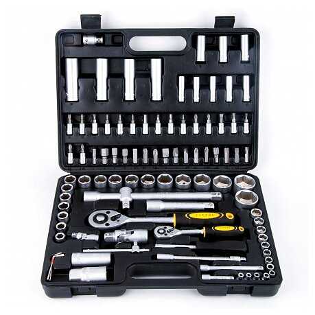 - + Хороший набор за свою цену. Трещотка выполнена качественно. Головки ходовые. Места в машине много не...