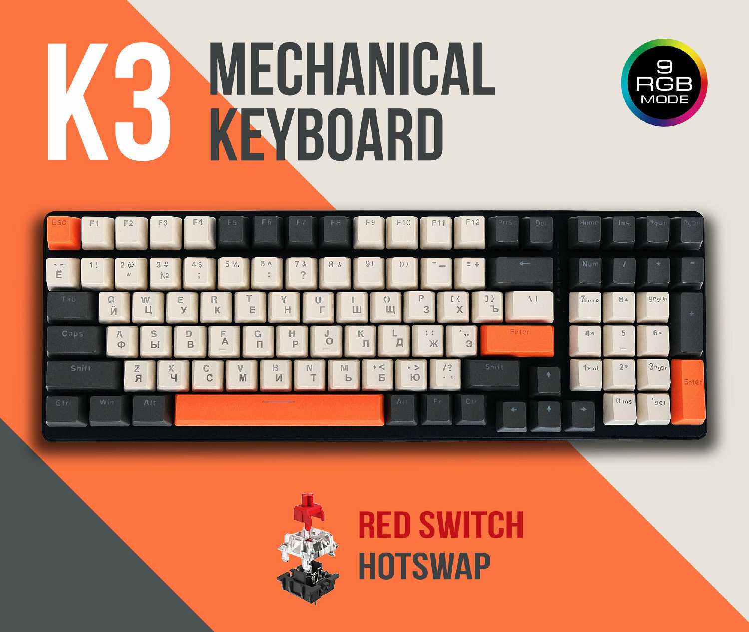 Отзывы о Клавиатура Wolf K3 механическая игровая, RGB, Type-C, HOTSWAP