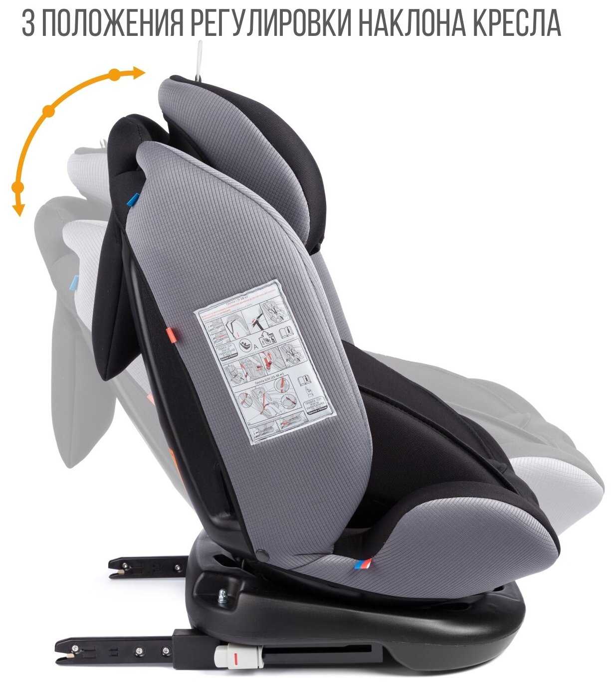 - 5 уровней наклона (до 45°) адаптируют кресло под позу ребенка, включая полулежачее положение для длительных поездок.
