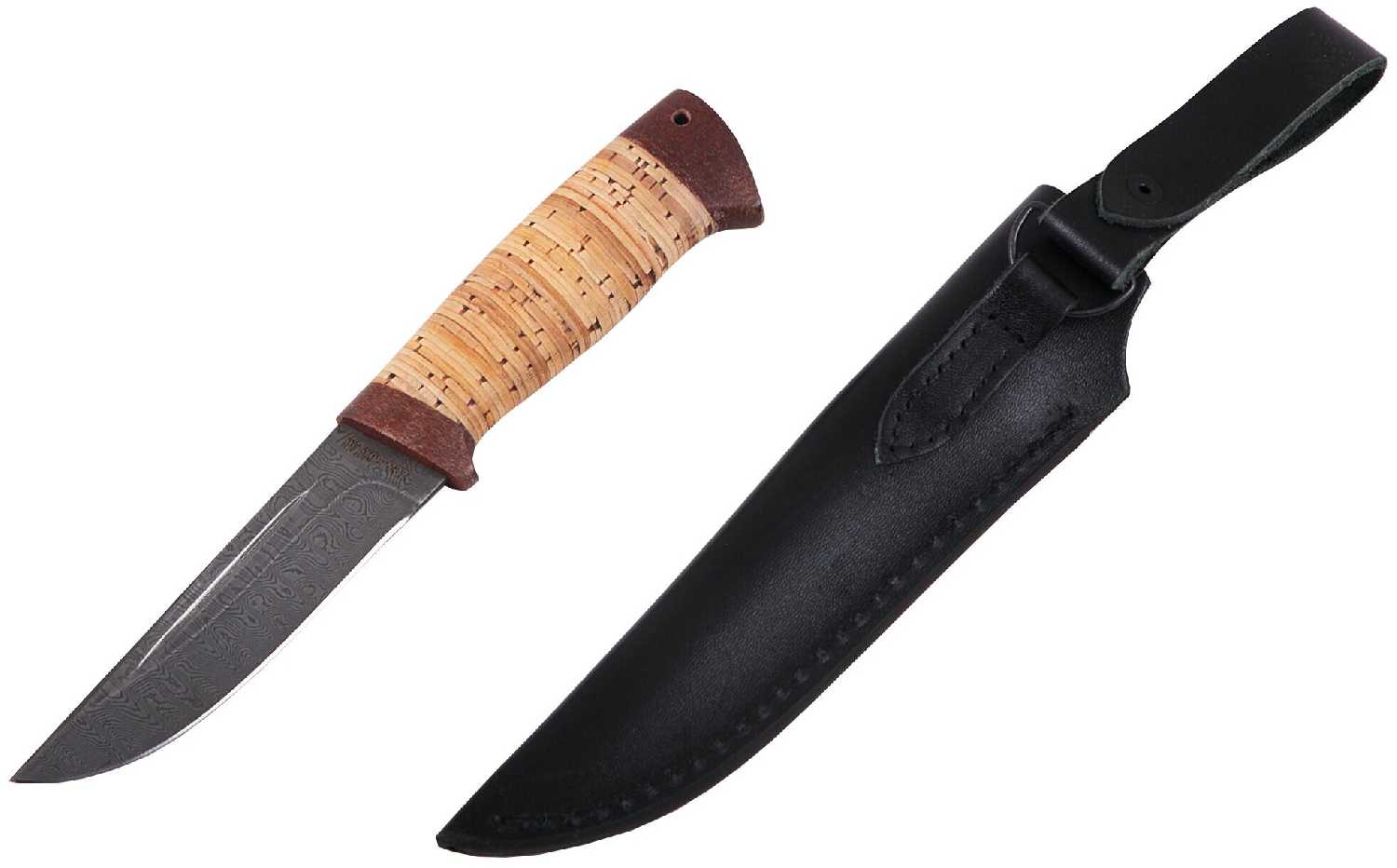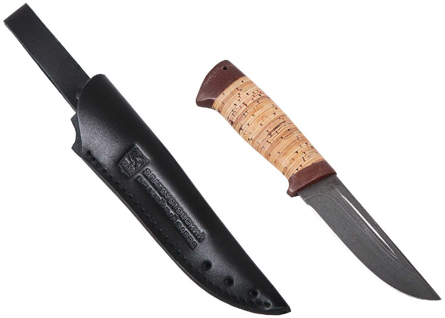 Характеристи Златоустовский оружейный завод Нож "Риф" (нержавеющая дамасская сталь, береста/текст