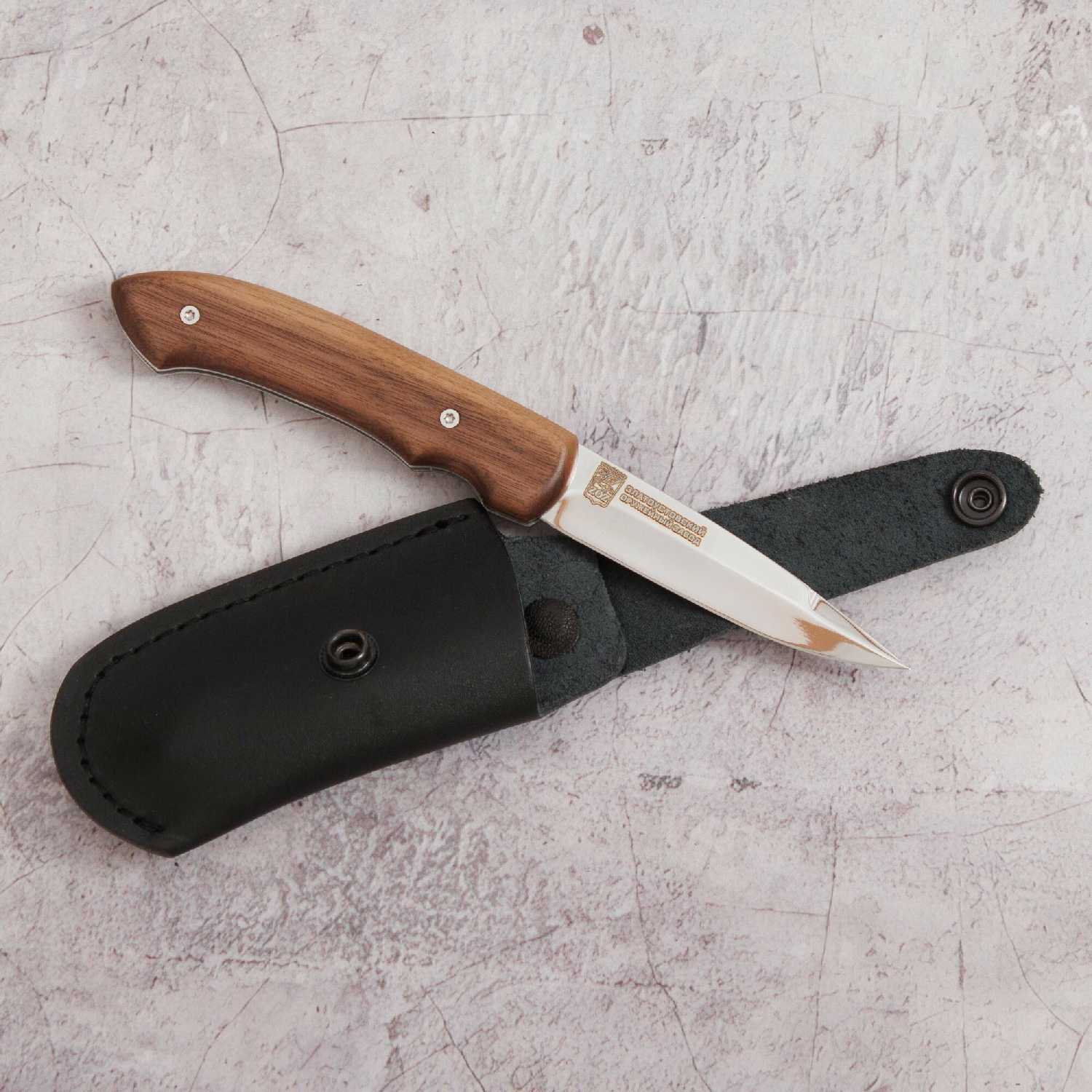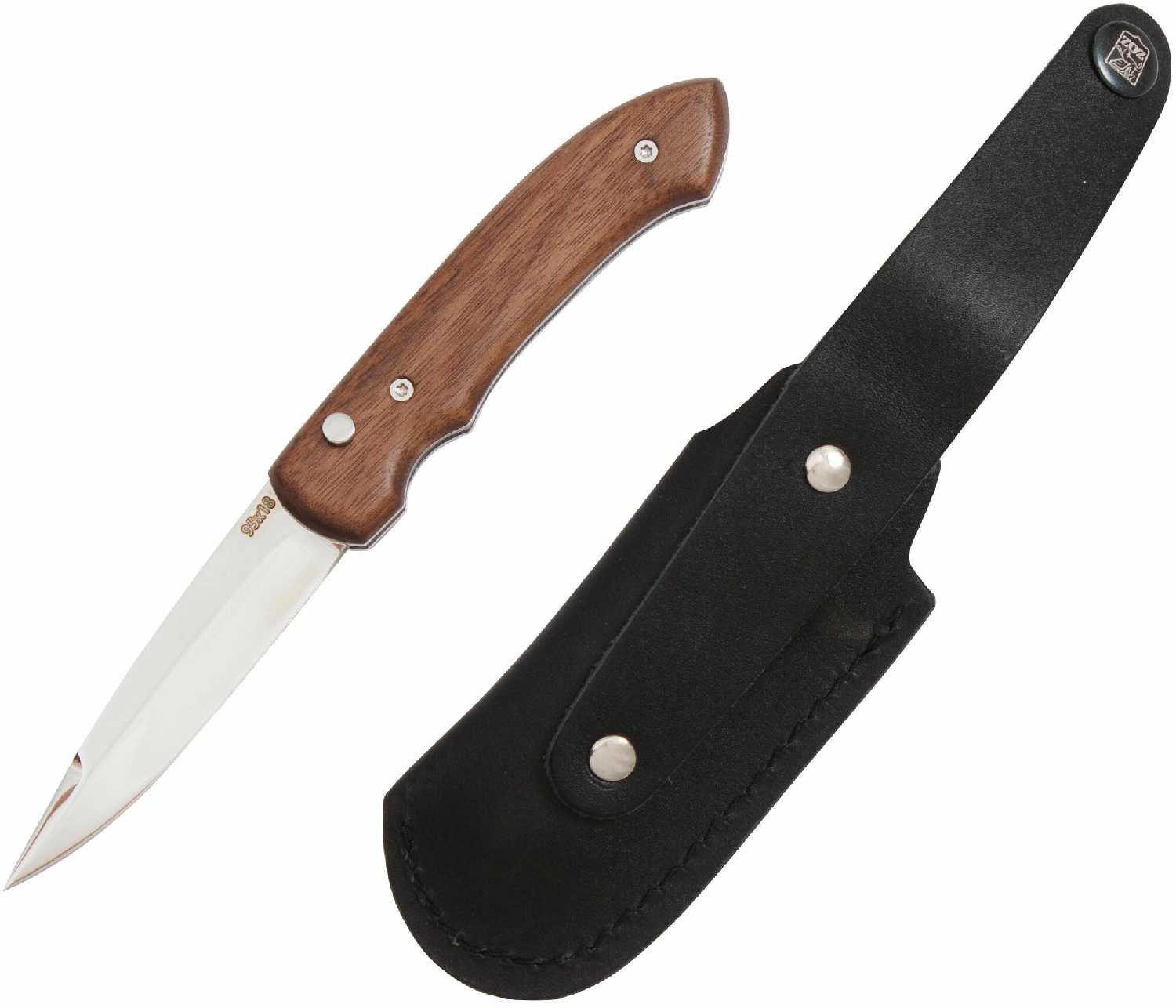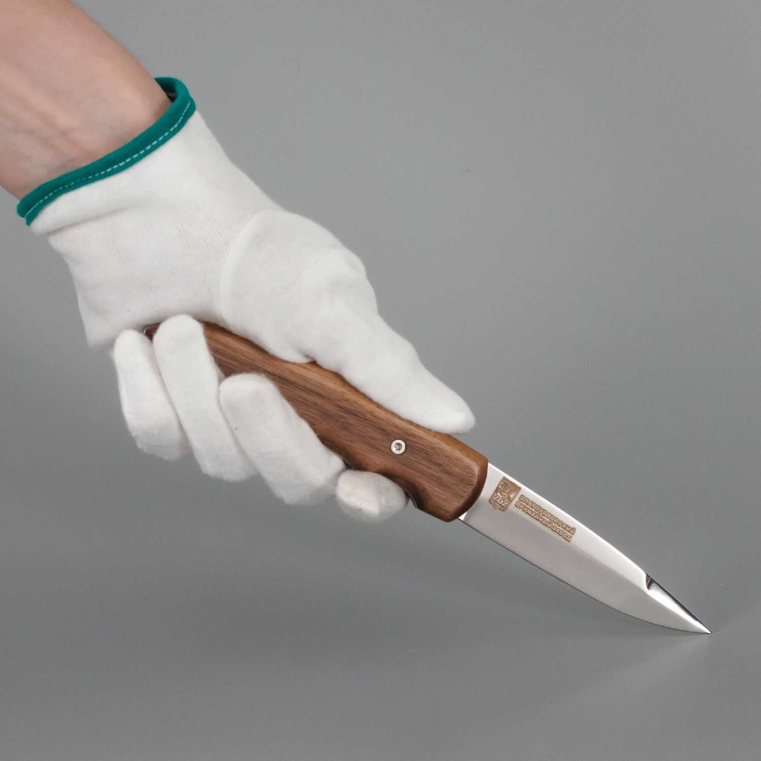 - + Очень качественно сделан. Рукоятка орех. Пружина сильная, при любом положении ножа четко открывается и фиксируется. Клинок отполирован, маркировка 95х18. Чехол мягкий, по размеру. Сертификат и результаты испытания прилагаются в небольшом пакетике. Упаковка заводская фирменная. Нож дорогой но он стоит того. Спасибо изготовителям!