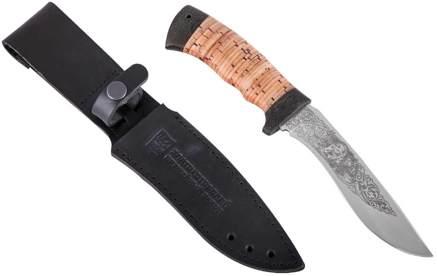 Характеристи Златоустовский оружейный завод Туристический нож "Медведь" (сталь 95x18, береста/текст