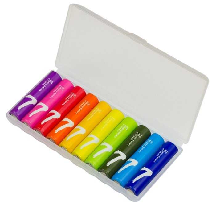 - Разноцветные батарейки (включая радужные оттенки) упрощают отслеживание севших элементов в устройствах.