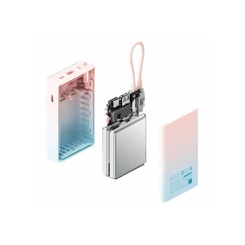 - + Приятный, аккуратный, есть значок CCC. Удобно, что есть встроенный кабель, который может и заряжать сам powerbank, и устройства. Разъём usb-c также работает и на input, и на output, usb-a только output.