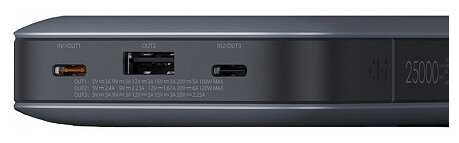 - 25 000 мАч (реальная ёмкость ~23 500 мАч) хватает на 7 полных циклов зарядки iPhone 14 или 2–3 цикла MacBook Air M1.