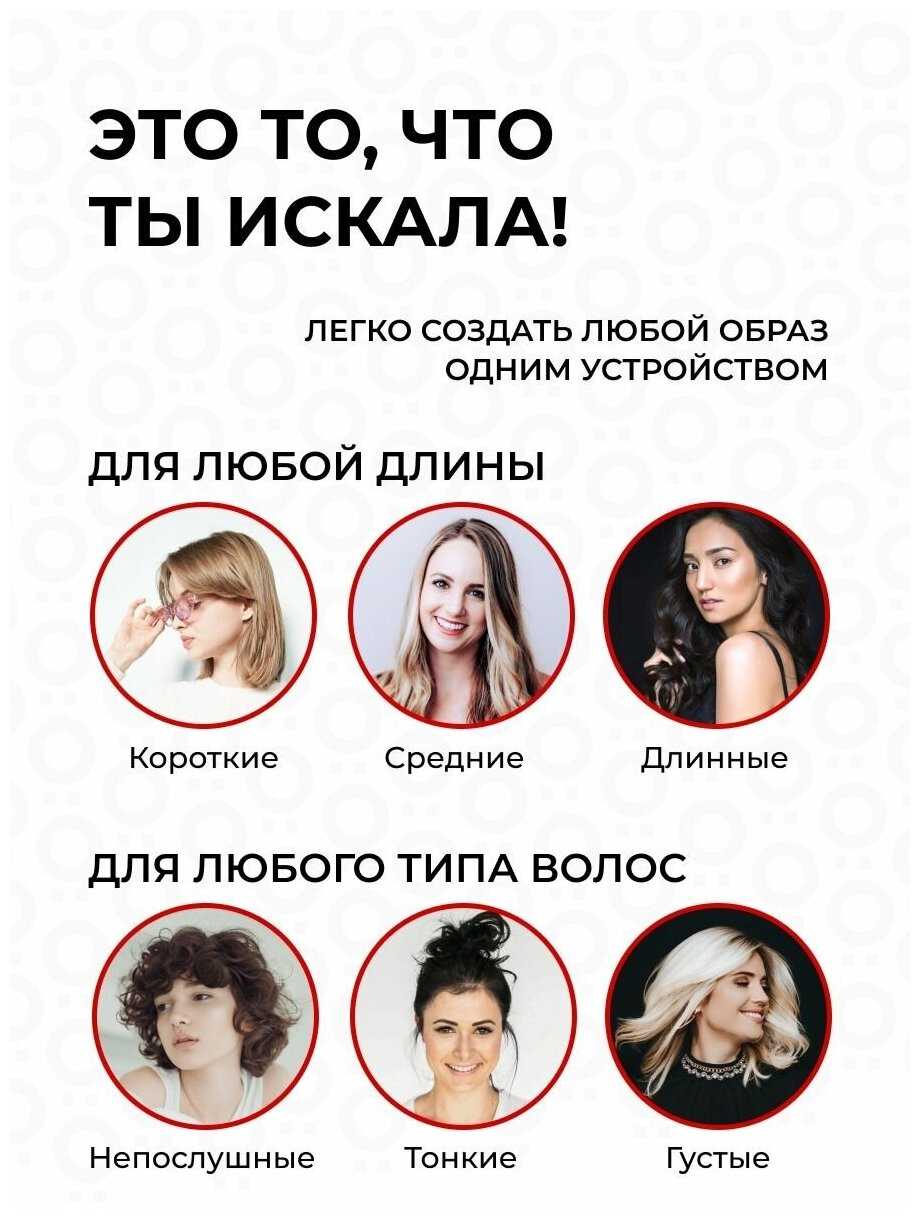 - Диаметр щеток (от 25 до 55 мм) подходит для коротких и длинных волос, позволяя создавать разнообразные прически.
