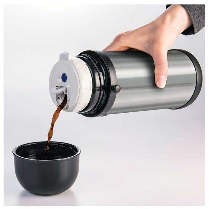 | Дополнительная информация : | Температура горячей жидкости в термосе. Значение для заполненного термоса при начальной температуре жидкости в термосе 95 °C и температуре окружающего воздуха 20 °C. Через 6 ч: 79°C. Через 24 ч: 54°C. |
