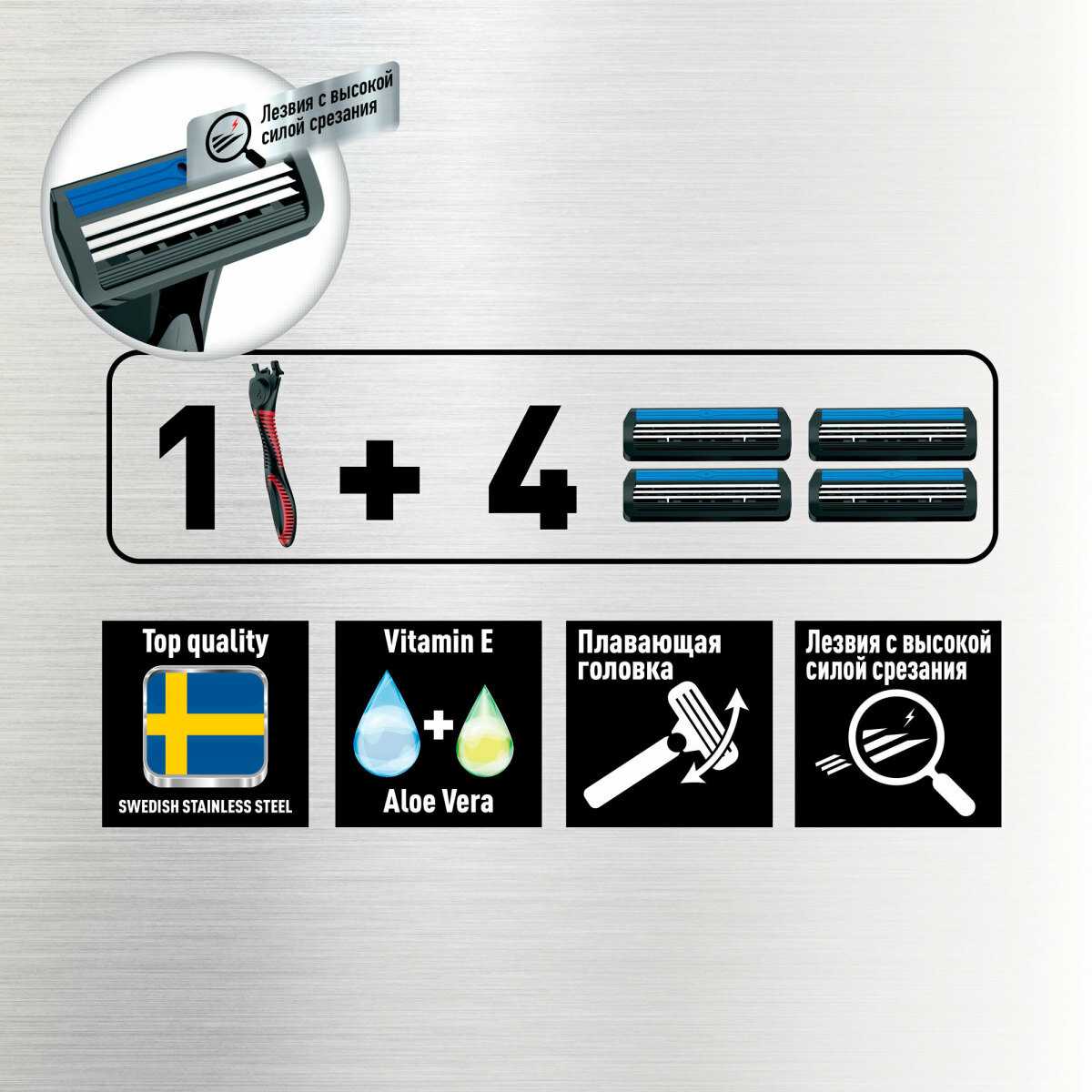 | Дополнительная информация : | 3 лезвия с 4мя сменными картриджами |